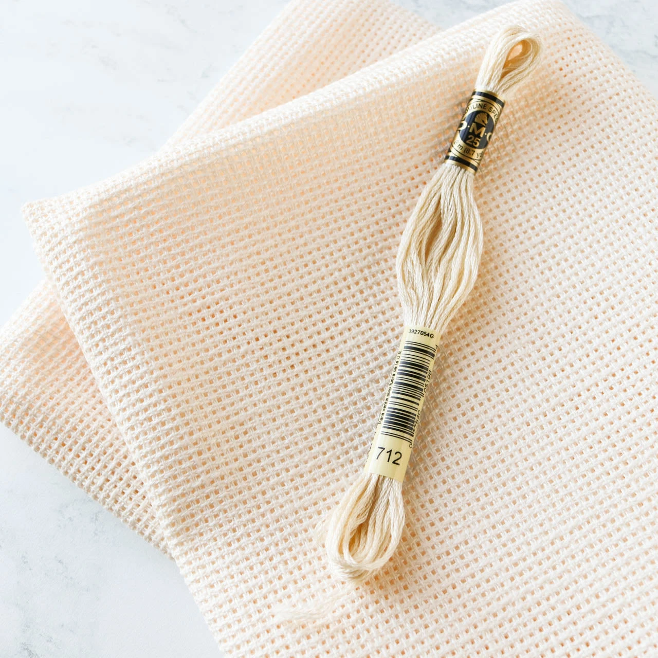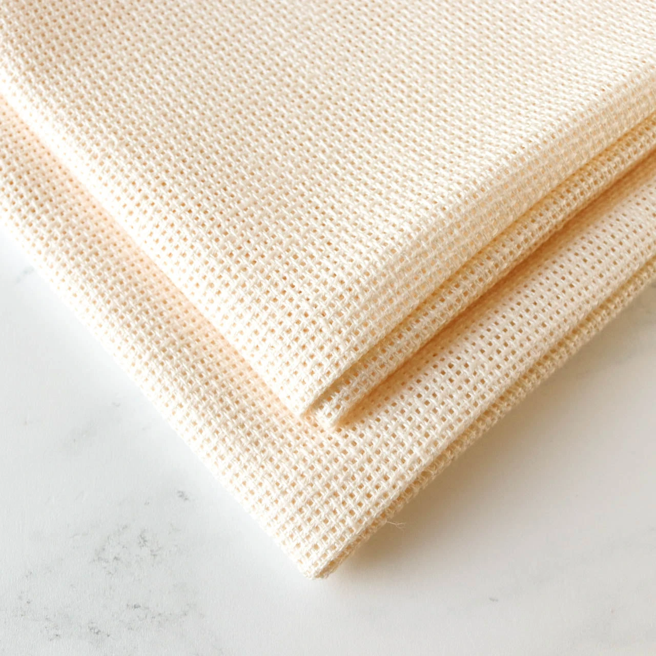 Tula cross stitch cloth is an evenly woven fabric that is great for beginners or for when you want a chunkier look. The holes are easy to see and easy to stitch in. Made of 60% rayon and 40% cotton, the fabric has a soft hand and drape. It is not as stiff as Aida, so you may want to use a hoop or frame when working with Tula.