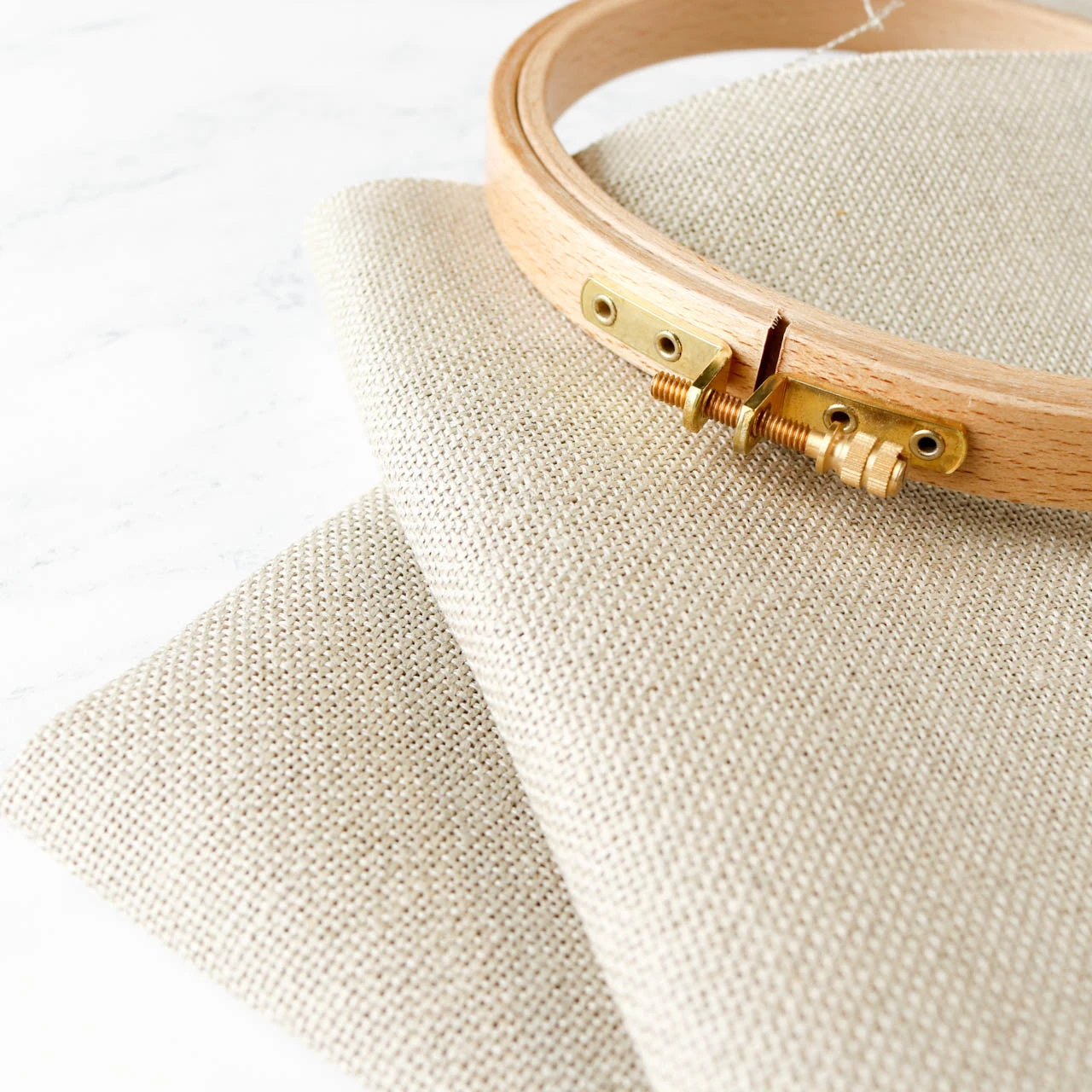 Cork is an evenly woven 100% linen fabric that can be used for cross stitch and other forms of counted thread embroidery. This White color most closely matches DMC embroidery floss color #3782.
