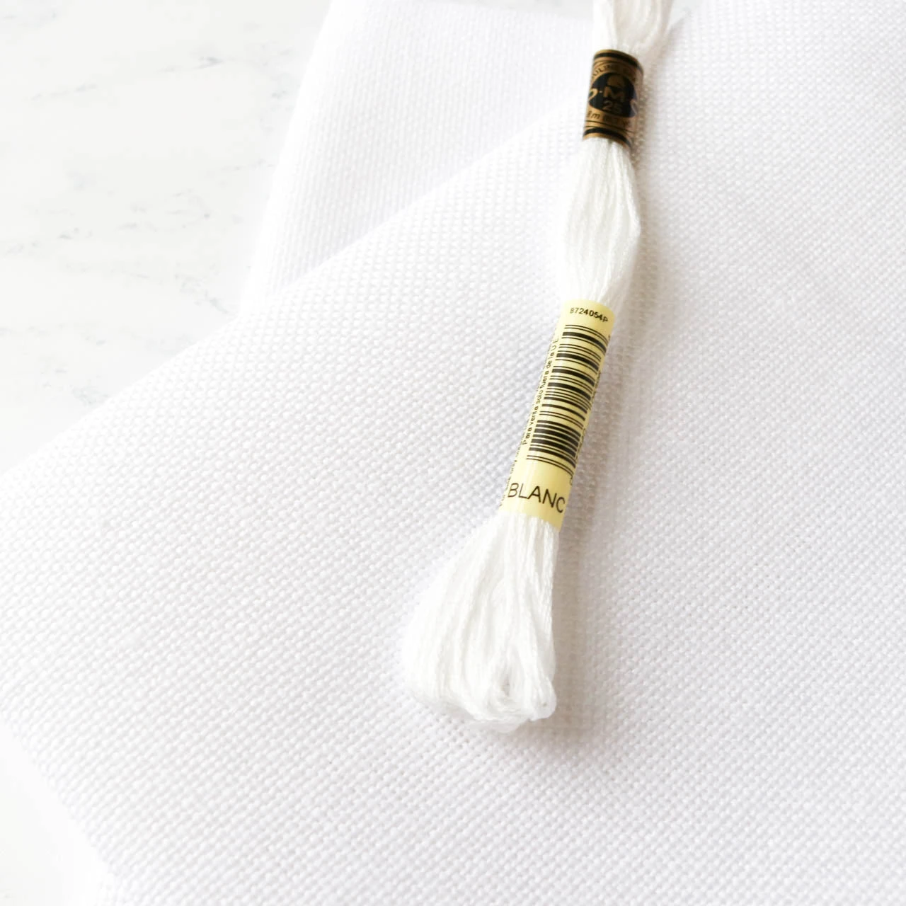 Cork is an evenly woven 100% linen fabric that can be used for cross stitch and other forms of counted thread embroidery. This White color most closely matches DMC embroidery floss color Blanc.