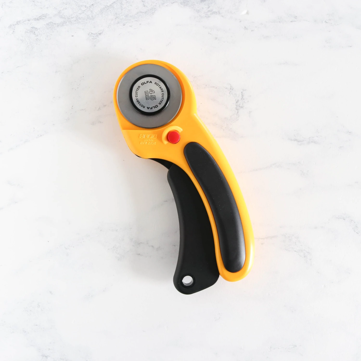 Great for both right- and left-handed users, the rotary cutter has a comfortable ergonomic handle that reduces hand and wrist fatigue. The blade is made of high-quality tungsten carbide tool steel for unparalleled sharpness and superior edge retention. A dual-action safety lock allows the blade to lock open for comfort and closed for safety.