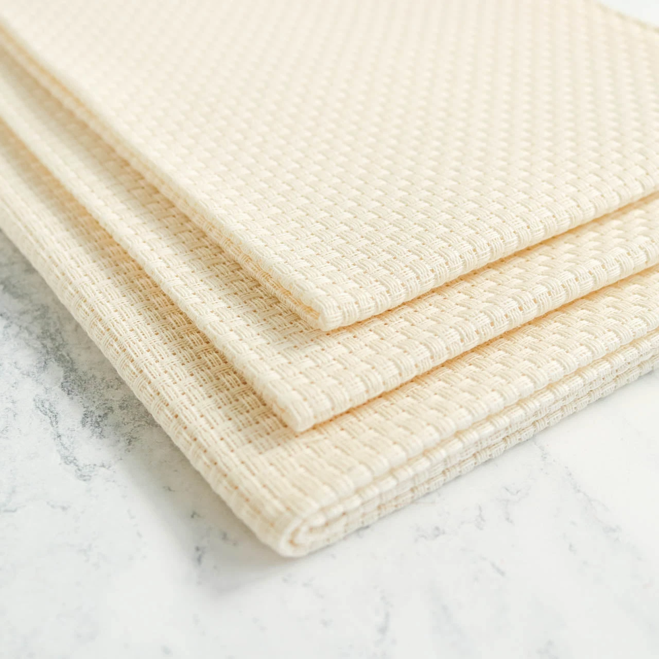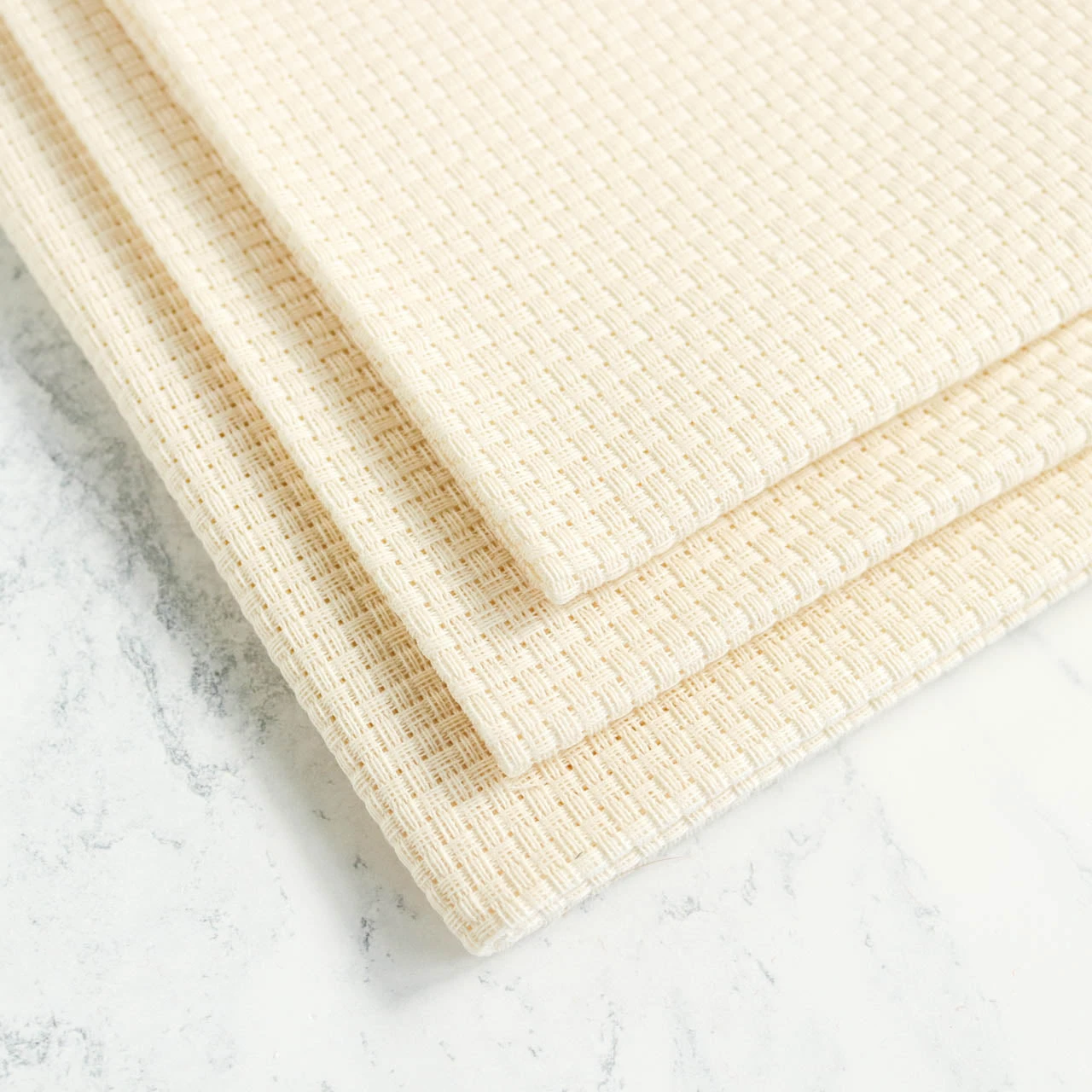 This is a big chunky fabric for big chunky cross stitch. At 6 stitches per inch, this fabric is great for pillows, wall hangings, and other large pieces. The 100% cotton fabric is stiff at first, but will loosen up as you work with it.