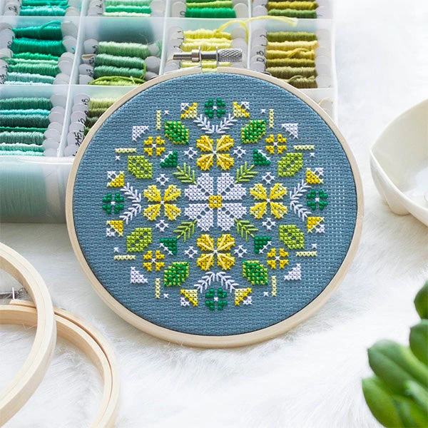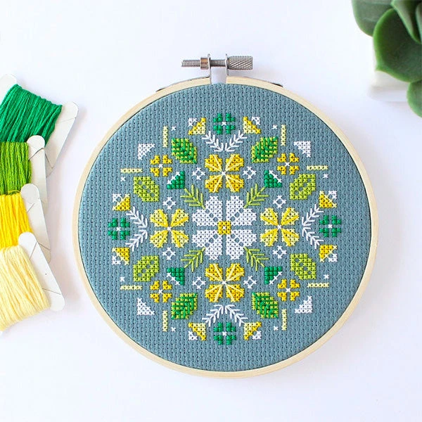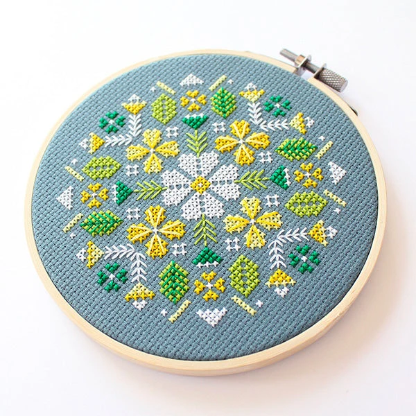 Stitch up a meadow of alpine flowers with this pretty cross stitch kit by Canadian artist Diana Watters. Slate blue Aida set off the yellows and greens in this pattern that has lots of lovely details. The kit comes with everything you need, making this a great choice for beginners.