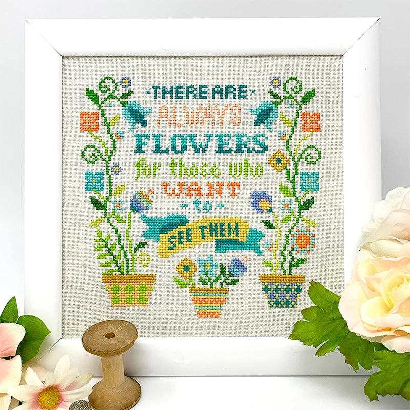 This pretty cross stitch pattern by Tiny Modernist is perfect for gardeners, flower lovers, or anyone who needs a dose of sunshine in their day. With a bright, modern color palette and fun typography, this design is a joy to stitch.