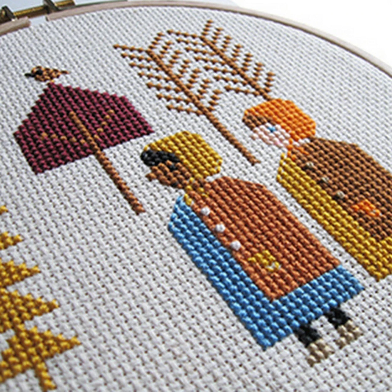 The simple joys of life, like taking a stroll in the woods with a friend, are depicted in cross stitch pattern by Samantha Purdy Textile. The design is available as a printed hardcopy pattern.