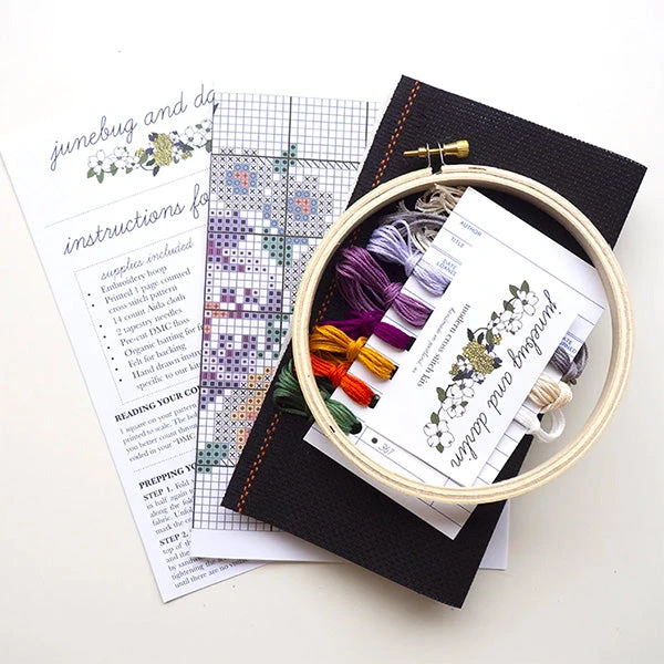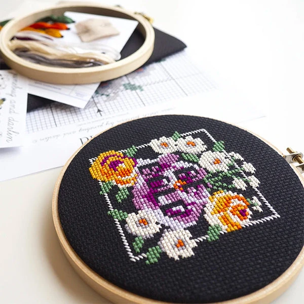 This colorful cross stitch kit by Junebug and Darlin is befittingly bold! Stitched on black Aida in a striking floral motif, it’s just the reminder you need. Perfect for beginning stitchers looking to explore color, or for anyone who appreciates a bold message.