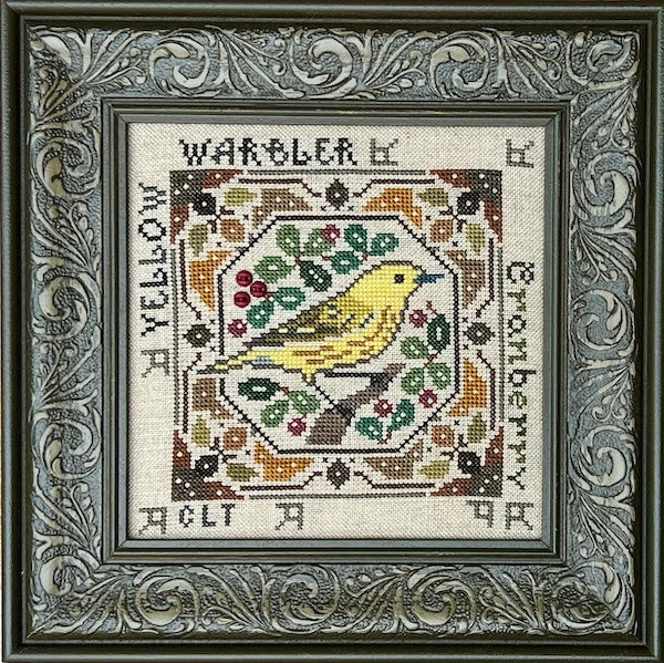 - Model was stitched on 28-count Raw linen using threads by DMC, Gentle Arts