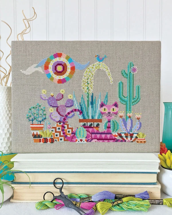 Soak up the warmth of a sunny cactus garden with this happy cat cross stitch pattern by Satsuma Street! Filled with vibrant succulents and cacti in pretty pots, this contemporary design will bring you hours of stitching pleasure.