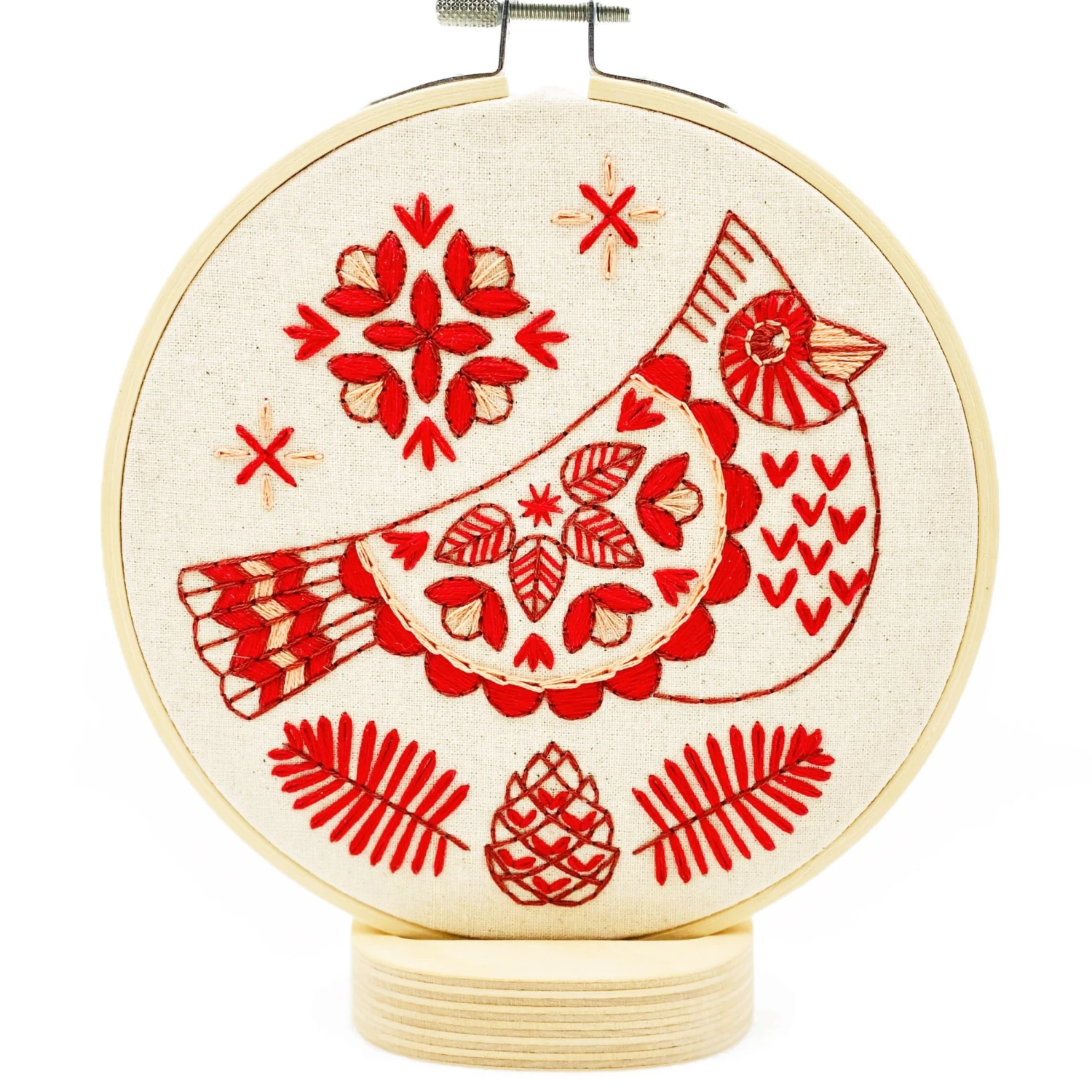 This Scandinavian folk inspired hand embroidery pattern by Nova Scotia based Hook, Line & Tinker is perfect for an ambitious beginner. The design uses satin, link, back stitch, and French knots.