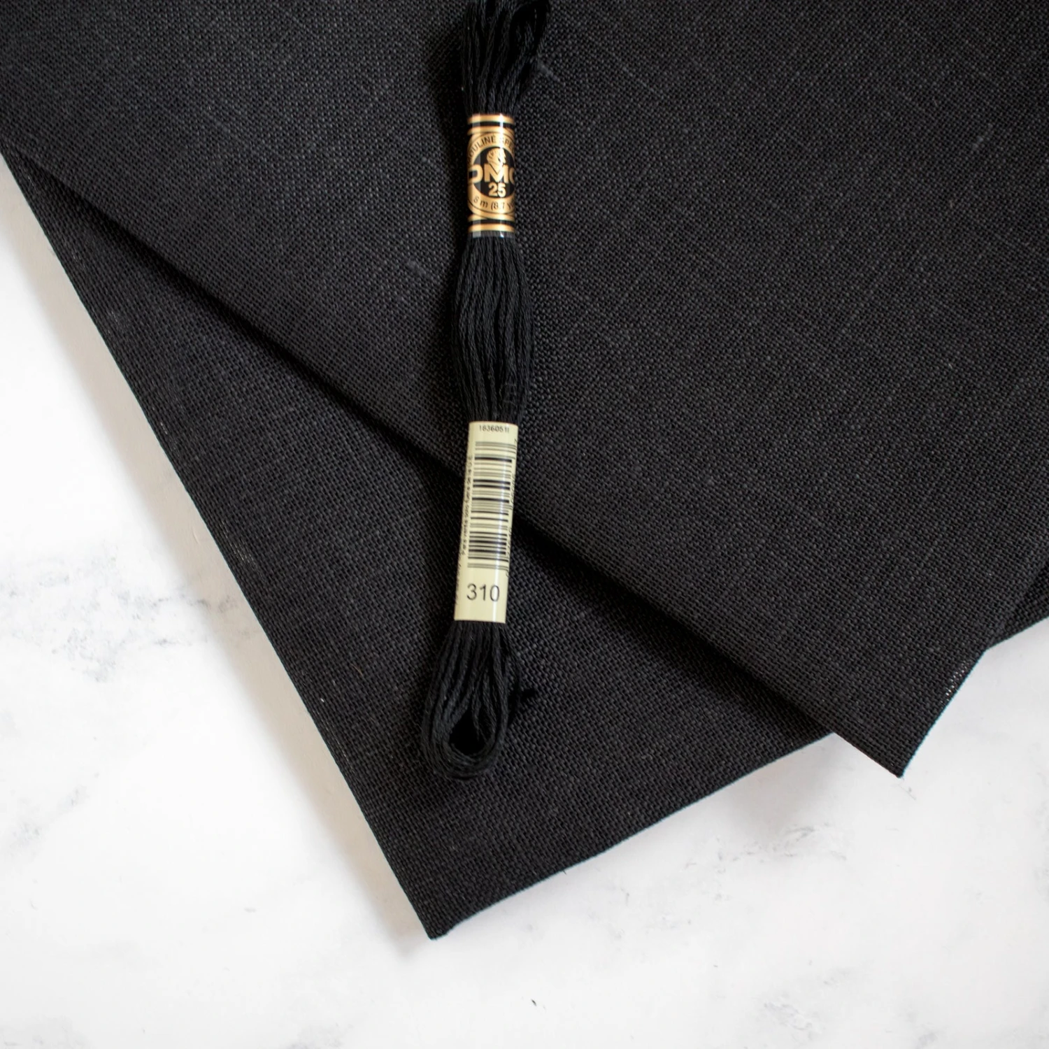 Linen has a beautiful drape and open weave that is perfect for cross stitch and embroidery. Cashel linen is an elegant fabric with a slightly irregular structure. This Black color linen is the equivalent of DMC embroidery floss color #310.
