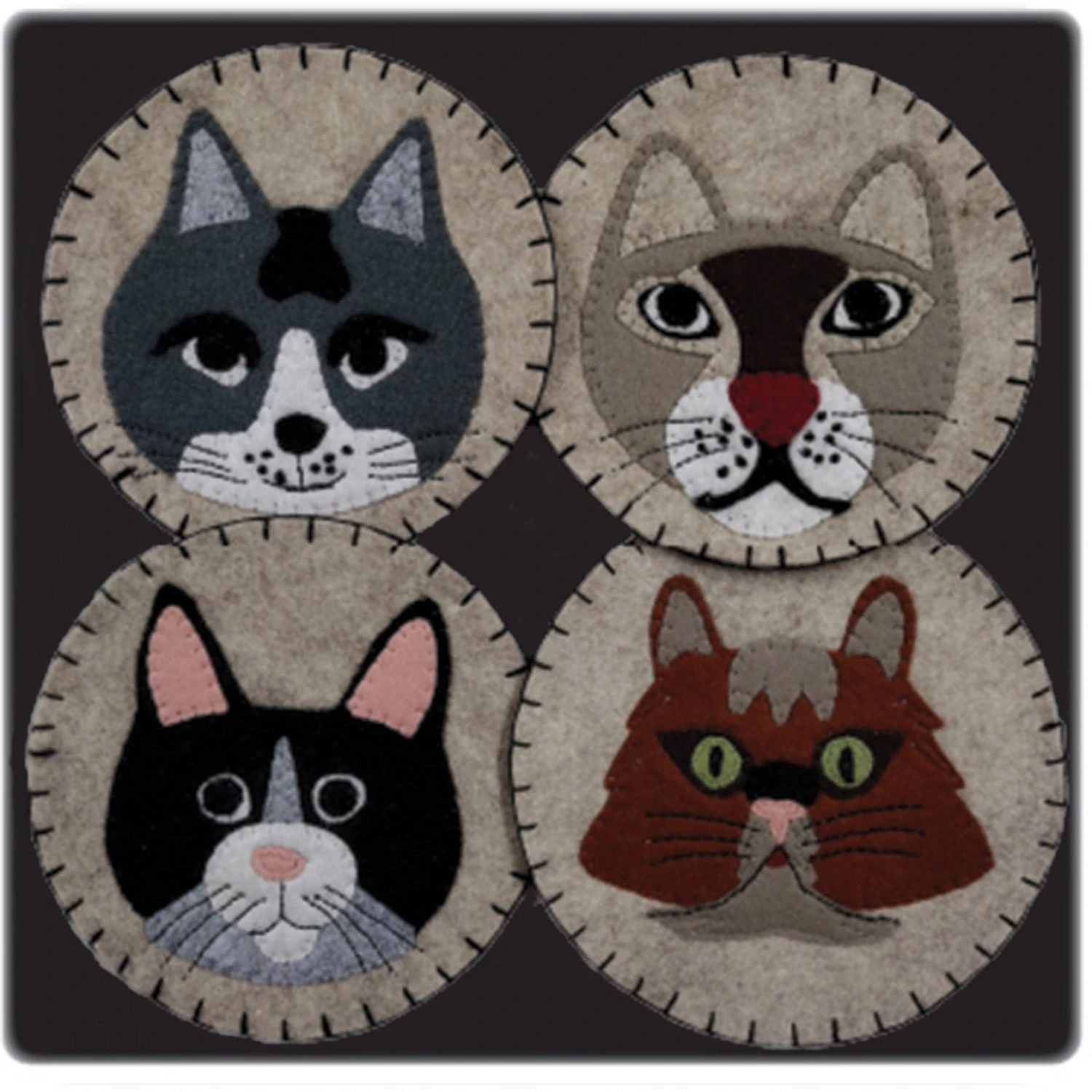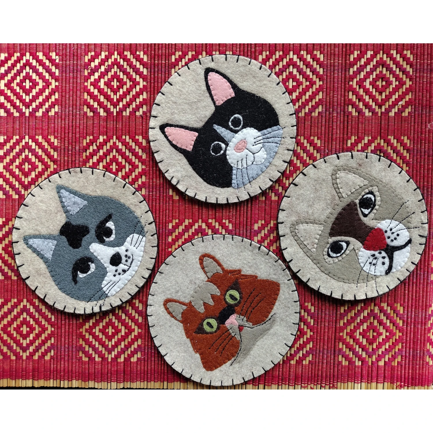 Attention cat lovers! This kit includes everything you need to make four adorable cat coasters, including the pattern and templates, as well as all the felt and floss required.