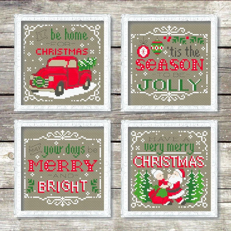 - Finished size: Each is 4.4” x 4.4″ on 14-count Aida or 28-count linen