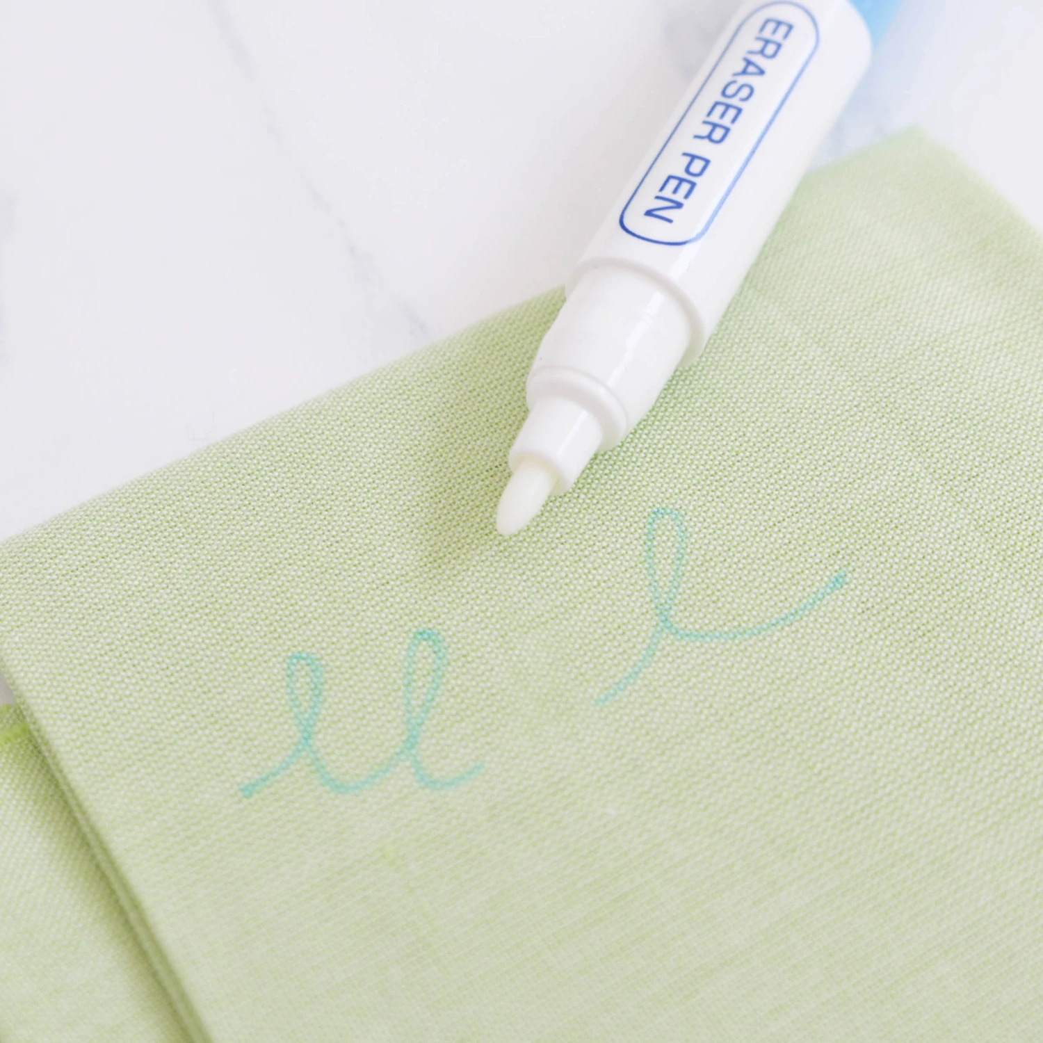 Water soluble marking pens are perfect for transferring detailed embroidery patterns onto fabric before you stitch. The blue ink will wash out once you are done stitching, or you can use the built-in eraser tip to clean up the lines.