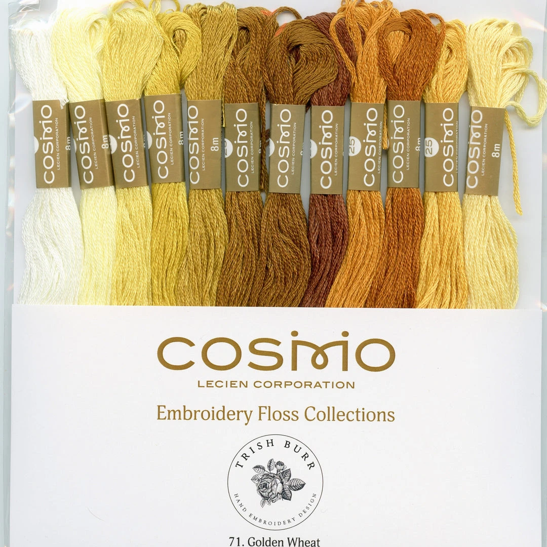 Expand your thread collection with this gorgeous palette of Cosmo embroidery floss. Curated by embroidery artist Trish Burr, this pack of golden yellow shades contains 12 skeins of coordinated color.