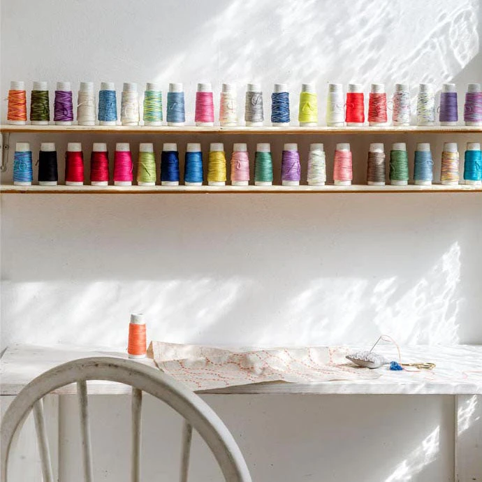 Available in 40 beautiful colors, including 20 solids and 20 multicolor variations, the thread is wound on cones, so it’s easy to cut what you need, and then store the rest. Each cone holds 30 meters/32.8 yards.