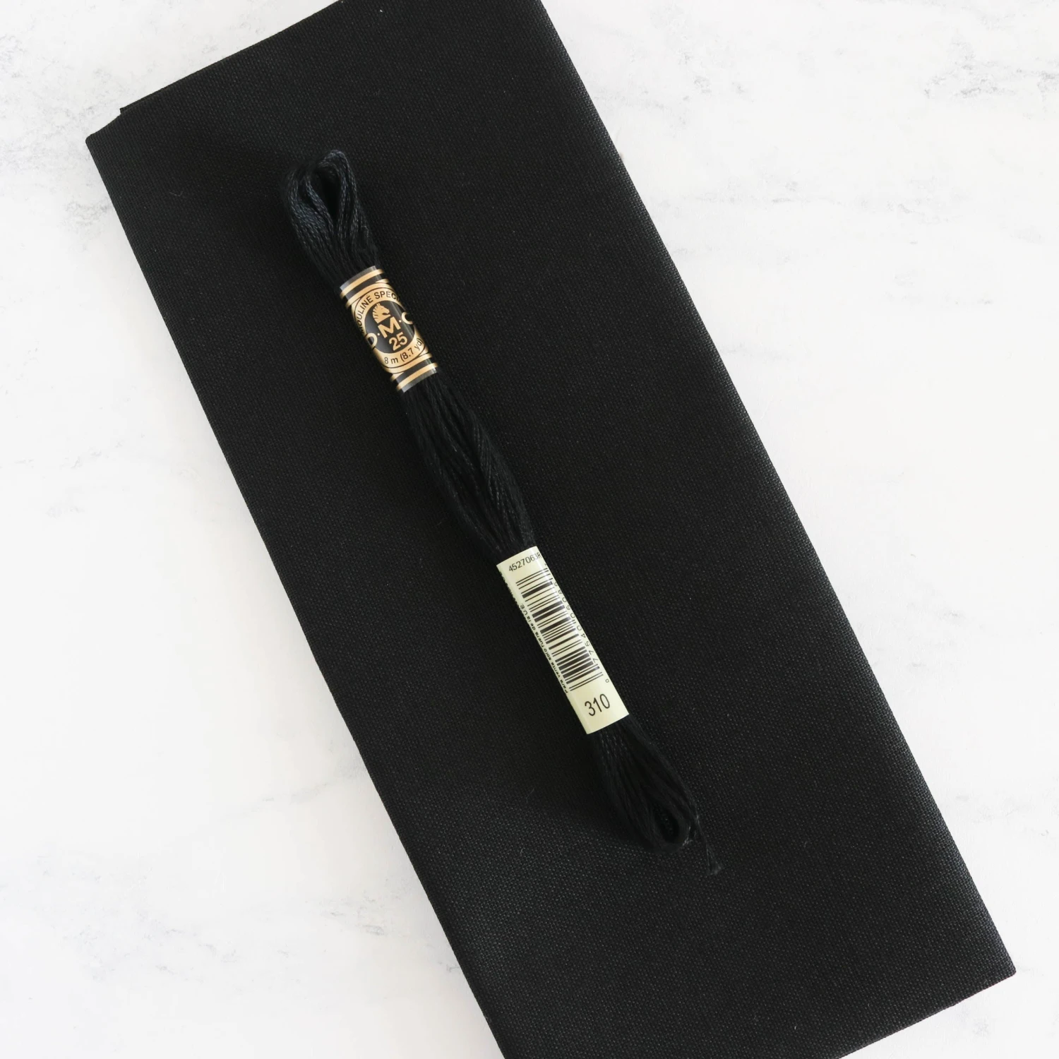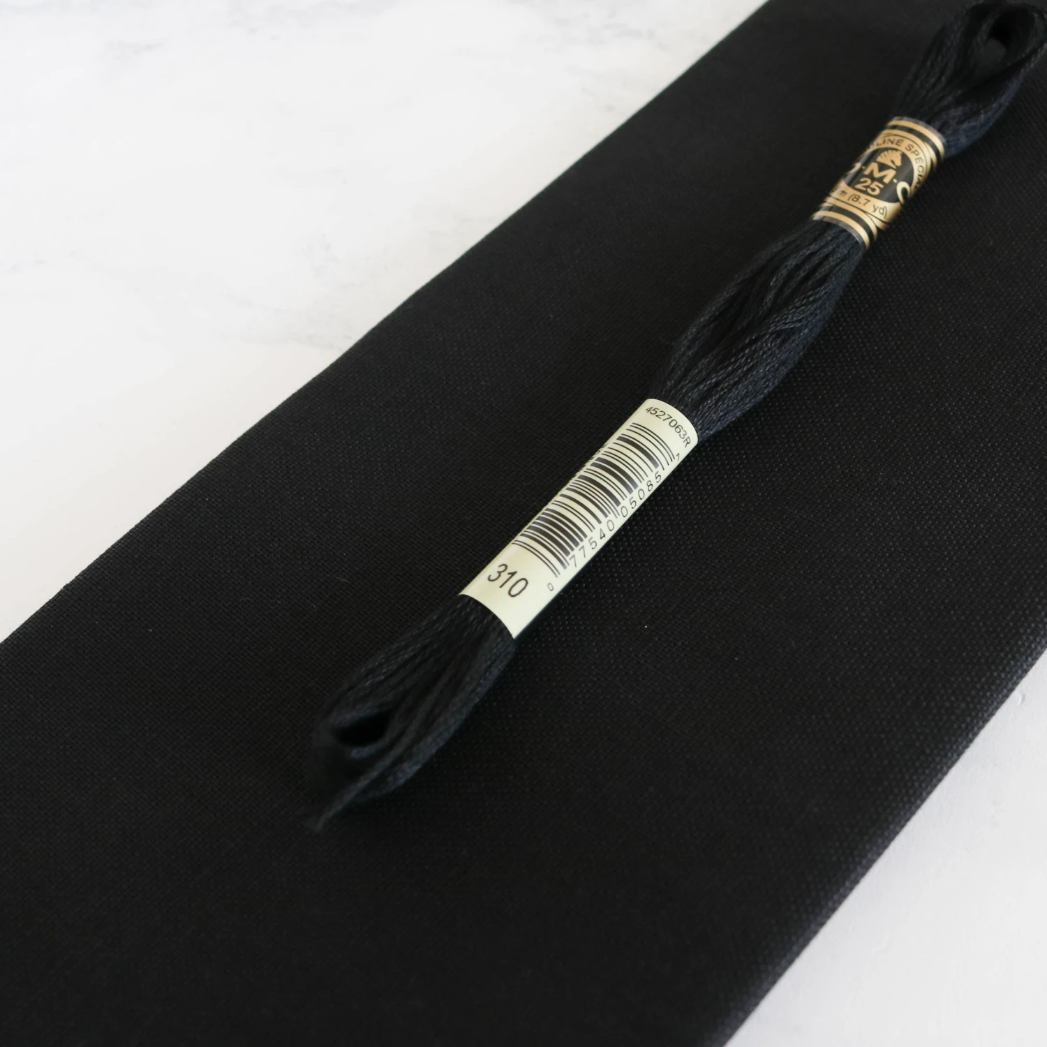 The fabric measures approximately 14 inches by 20 inches. This Black color is closest to DMC #310.