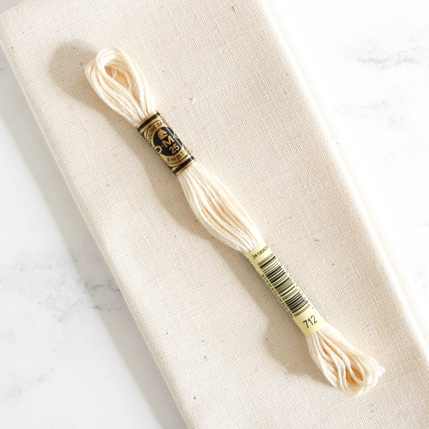 The fabric measures approximately 14 inches by 20 inches. This Ivory color is closest to DMC #712.