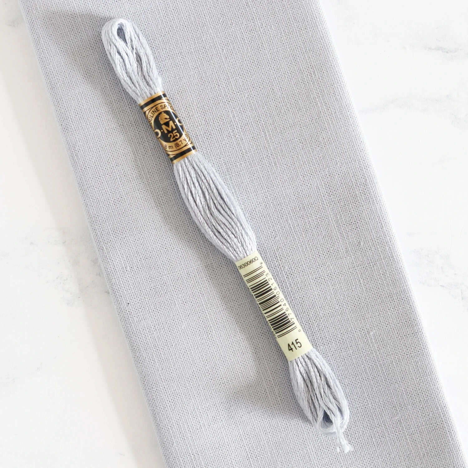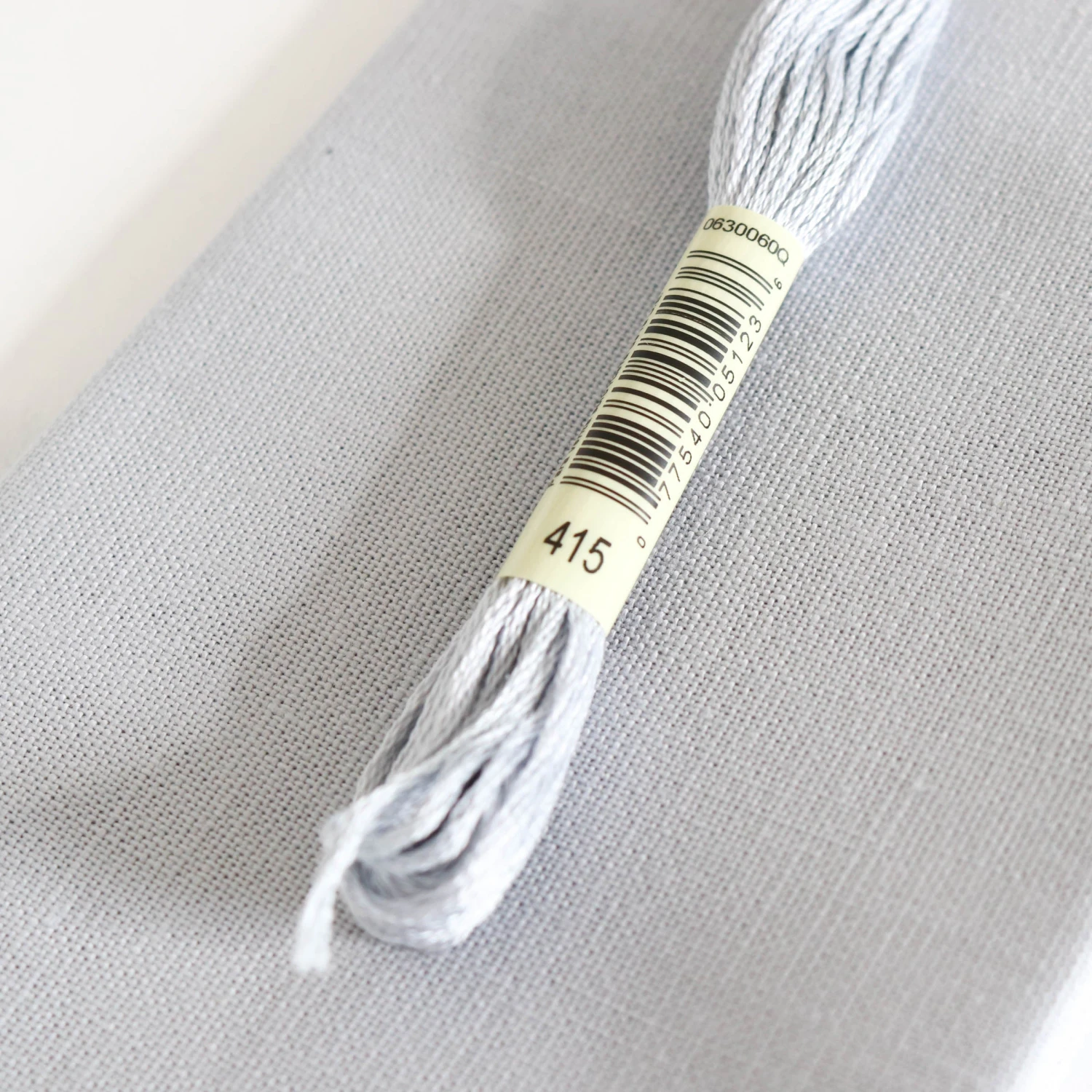 The fabric measures approximately 14 inches by 20 inches. The Smokey Gray color is closest to DMC #415.