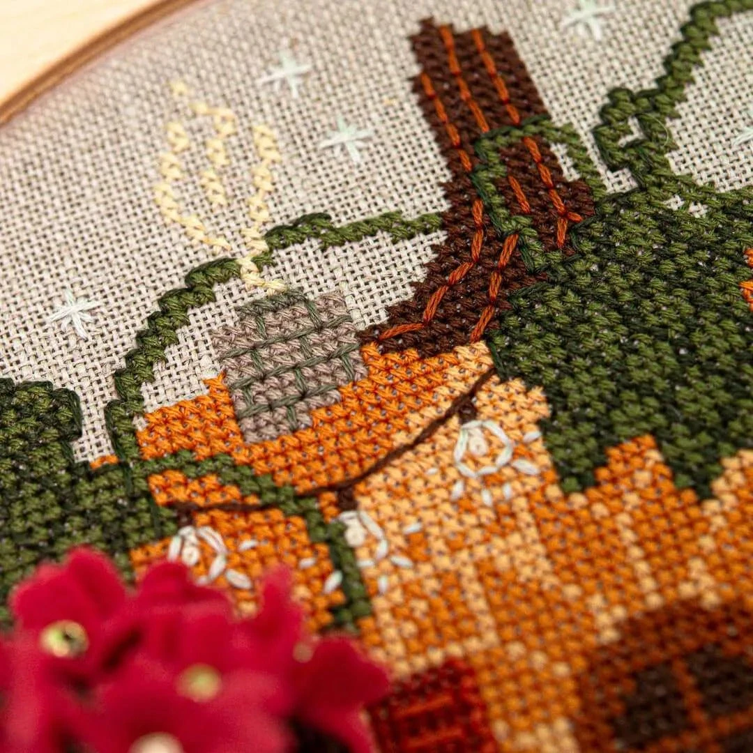 This cozy cross stitch pattern by Counting Puddles is available as a printed hardcopy pattern. If you want to get up and stitching quickly, save yourself the time of collecting all the supplies and purchase one of our bundle options which include the pattern along with fabric, thread, and needles.