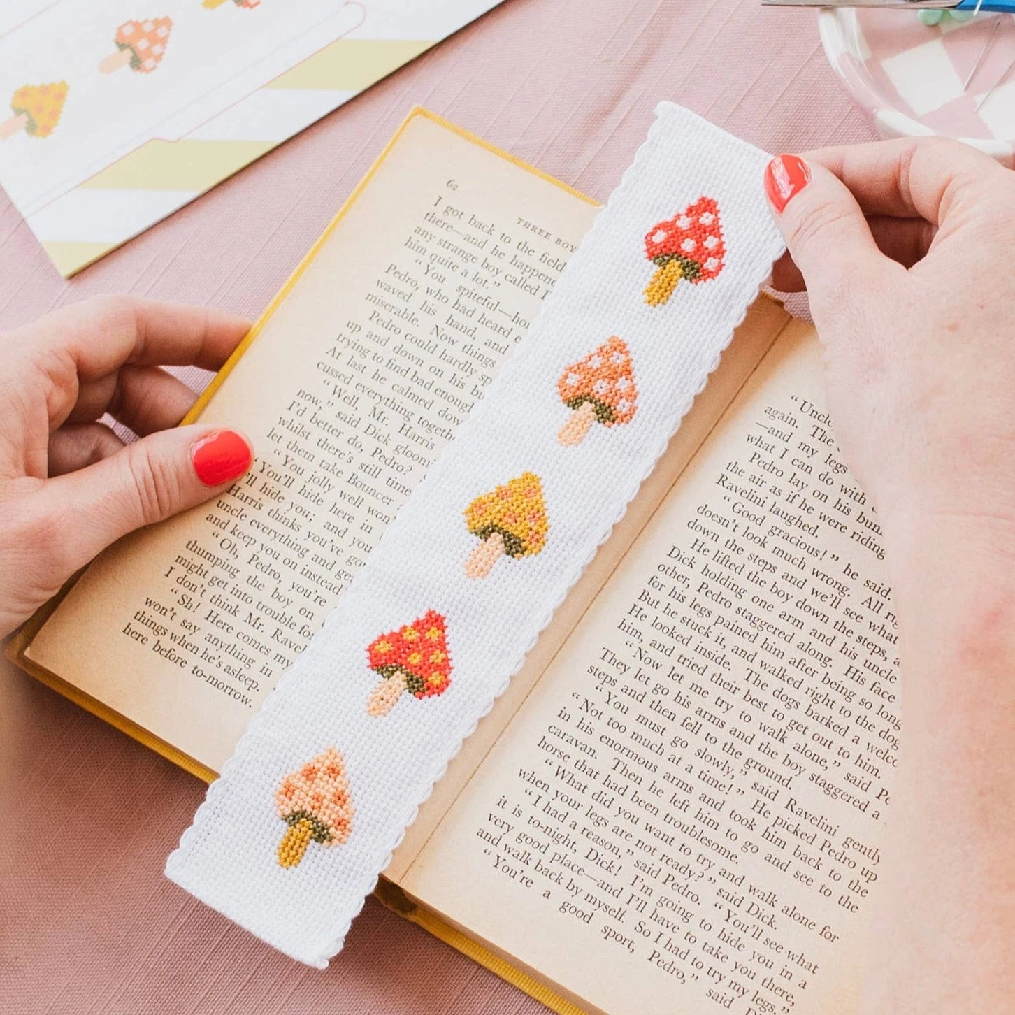 Add a bit of woodland whimsy to your reading routine with this mushroom-themed cross stitch bookmark kit by Cotton Clara. Featuring a row of colorful toadstools, this charming design is a fun and beginner-friendly project for nature lovers and stitchers of all ages.