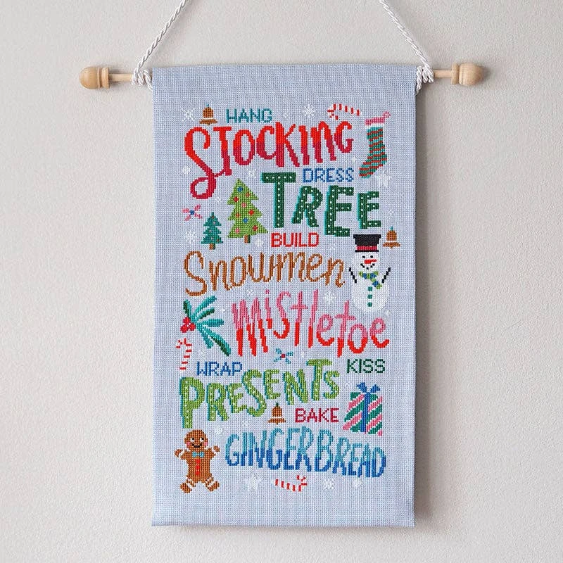 Decorate your home at Christmas with this modern typography cross stitch kit! Made by UK-based Caterpillar Cross Stitch, the kit comes with everything you need.