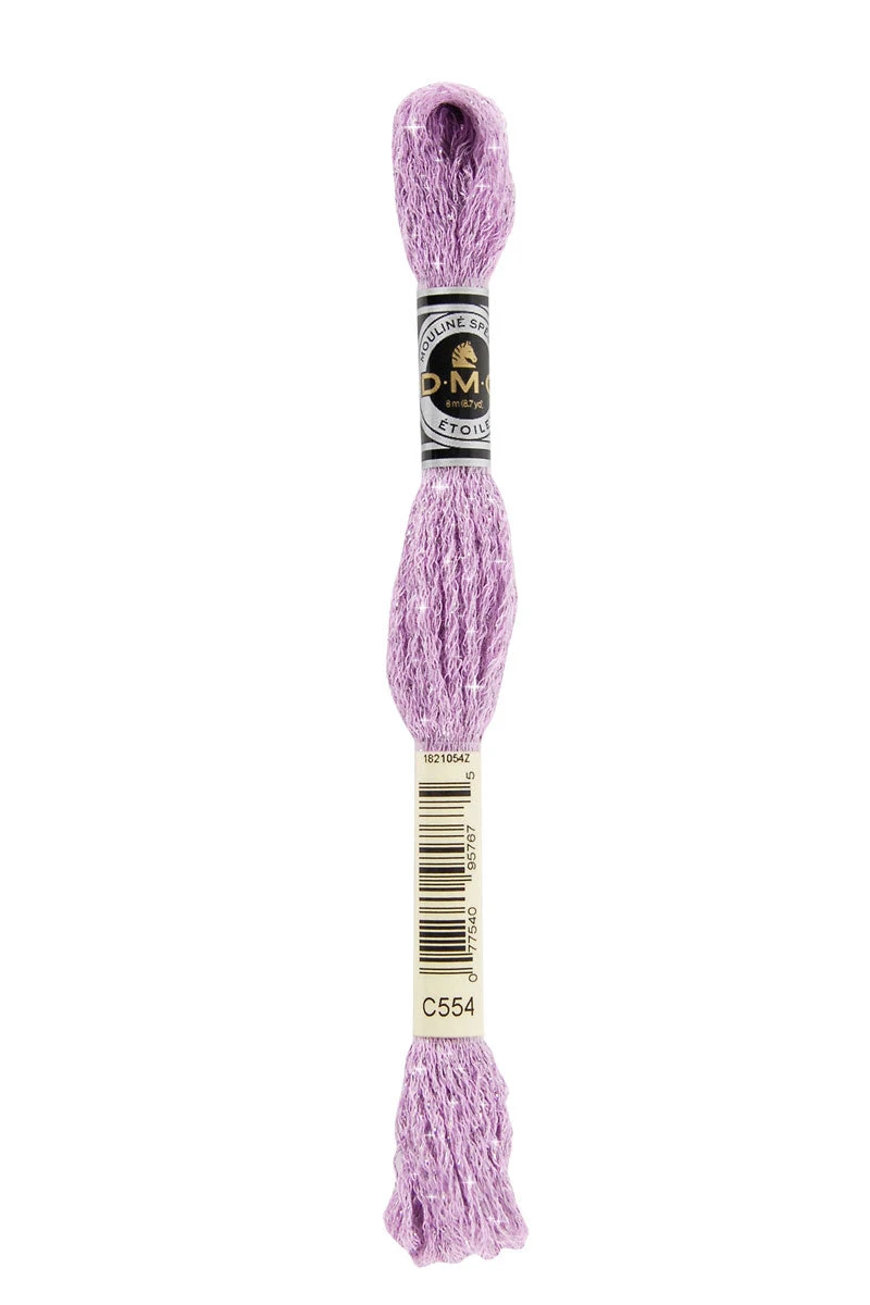 Étoile thread is available in 35 different colors. The colors coordinate seamlessly with regular DMC floss colors, so it’s easy to make substitutions and add shimmer where you want it in your project. Light Violet Étoile C554 is the equivalent of regular floss #554.