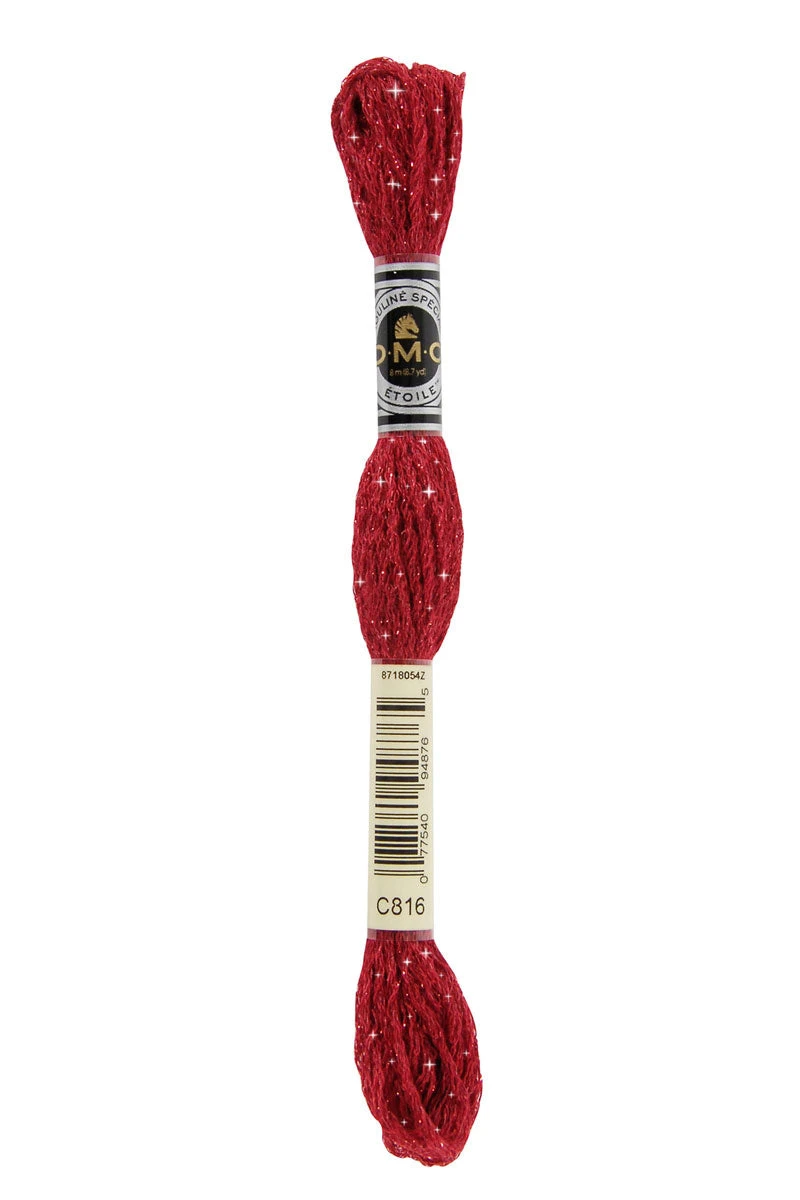 Étoile thread is available in 35 different colors. The colors coordinate seamlessly with regular DMC floss colors, so it’s easy to make substitutions and add shimmer where you want it in your project. Garnet Étoile C816 is the equivalent of regular floss #816.