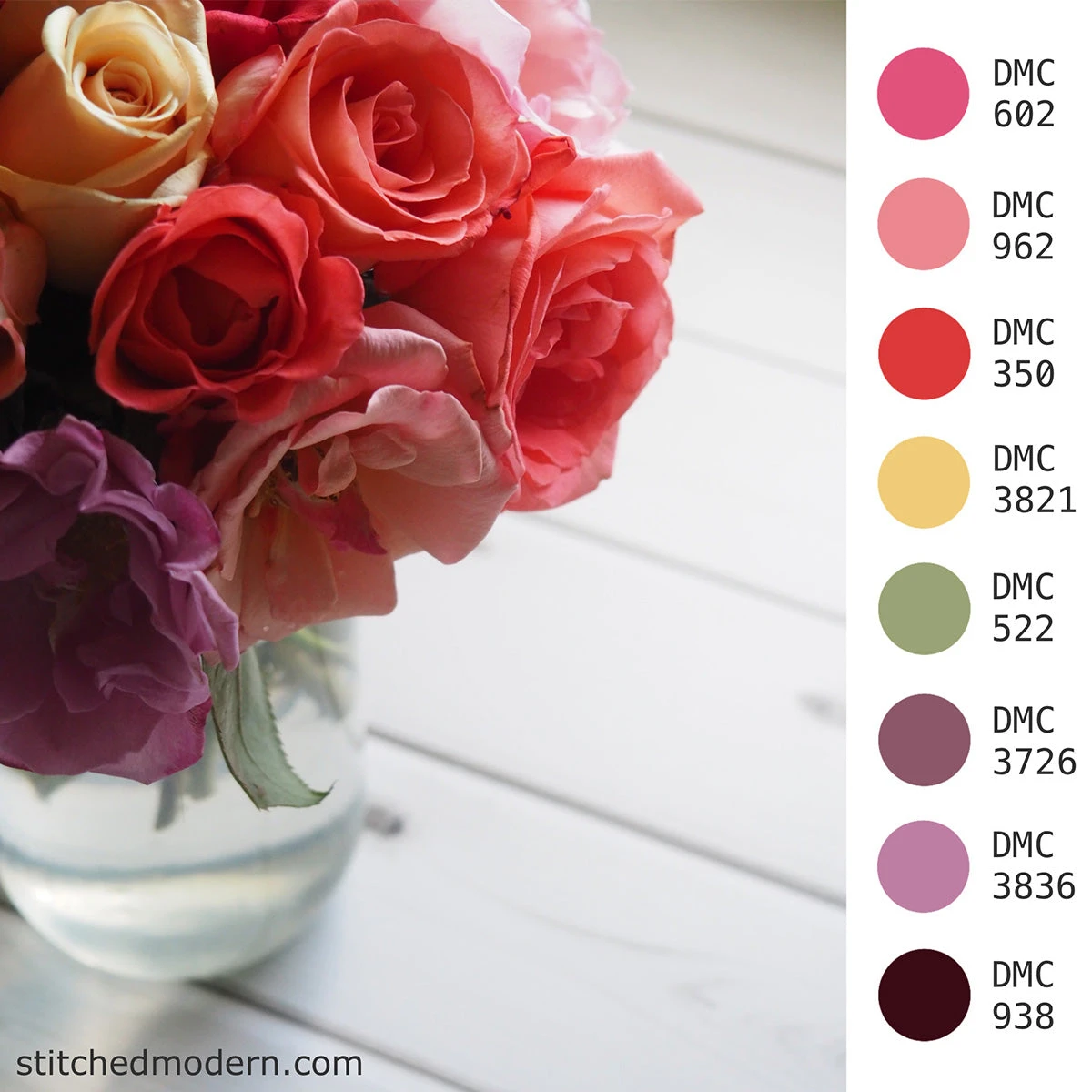 We hand selected this floss color palette using a gorgeous photo as our inspiration. This color palette is a Stitched Modern exclusive, so you will only find it here!