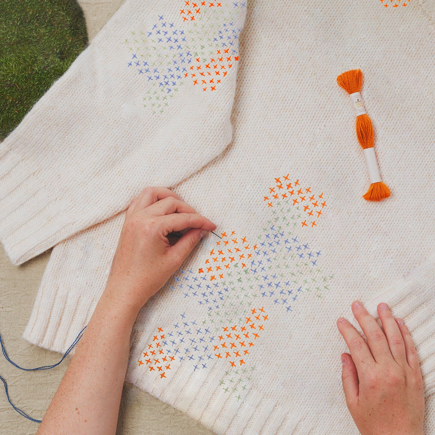With a fluffy quality that adds softness, texture, and a three-dimensional quality to needlework, Eco Vita is a versatile thread that is suitable for a wide range of craft techniques. Explore its properties as you create stunning embroidery designs, cross-stitch and textural punch needle projects. Projects can be hand washed at 30 degrees, so it’s ideal for visible mending, darning, weaving or embellishing cherished textiles.