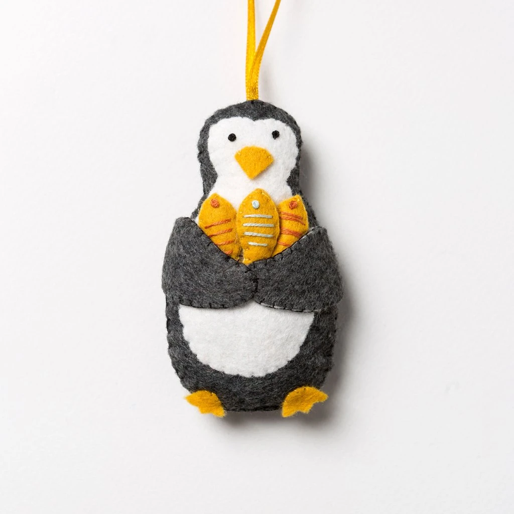 This super cute Penguin mini craft kit contains everything you need to make one felt hanging decoration. He’s just back from fishing and is clutching his prize haul of tasty golden fish. Detailed instructions will help you bring the project delightfully to life.