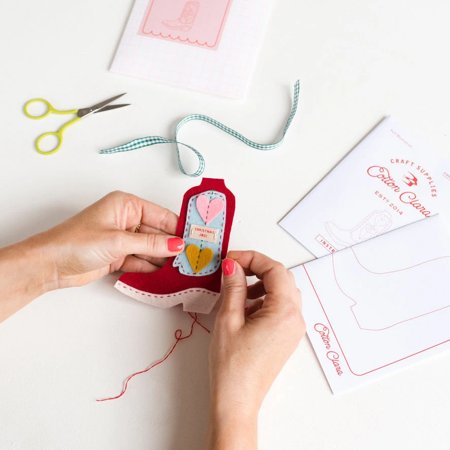Make a fun felt ornament for you tree with this easy craft kit. The kit comes with everything you need, including 100% wool felt, templates, and detailed instructions. Designed by UK-based Cotton Clara, the kit is a great beginner project.