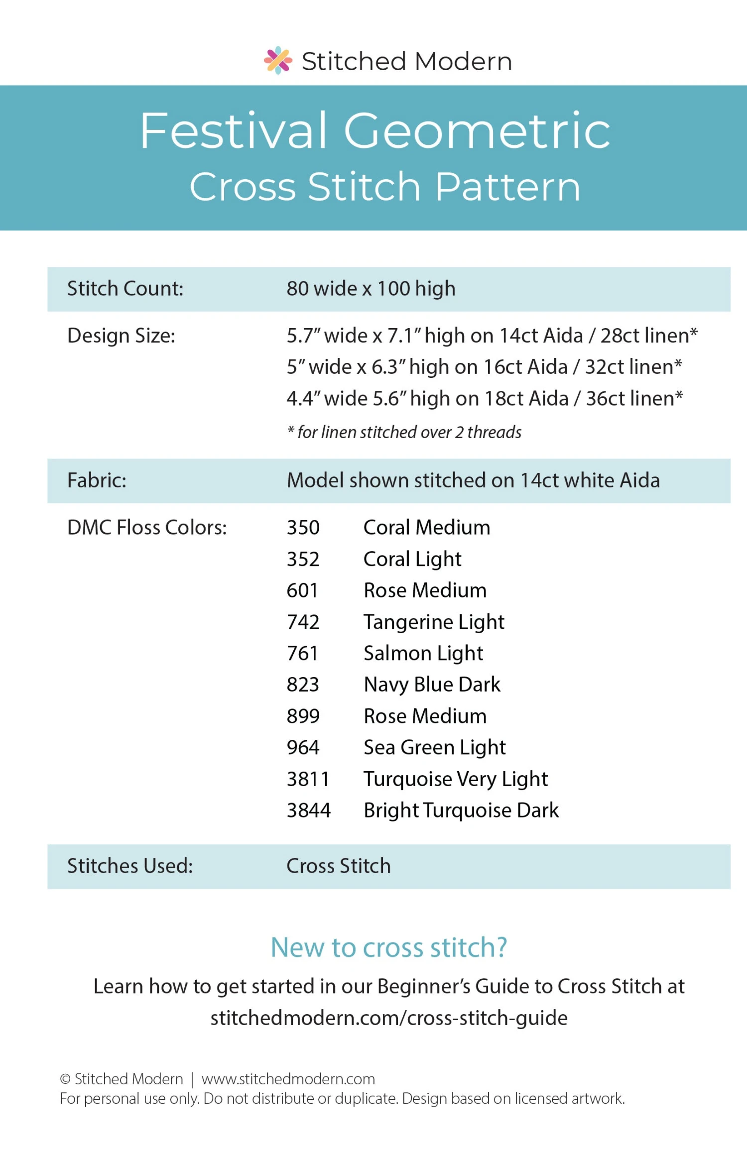 If you’re looking for a relaxing stitching experience, geometric cross stitch designs are a perfect choice. The simple shapes and joyful color palette of our new Festival Geometric design lets you focus on the rhythm of stitching. It’s also a great choice for those new to cross stitch.