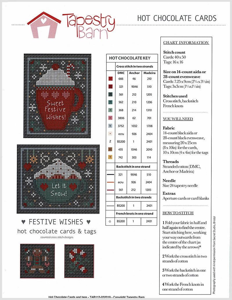 - Finished size: 2.9″ x 3.6″ on 14-count Aida or 28-count linen