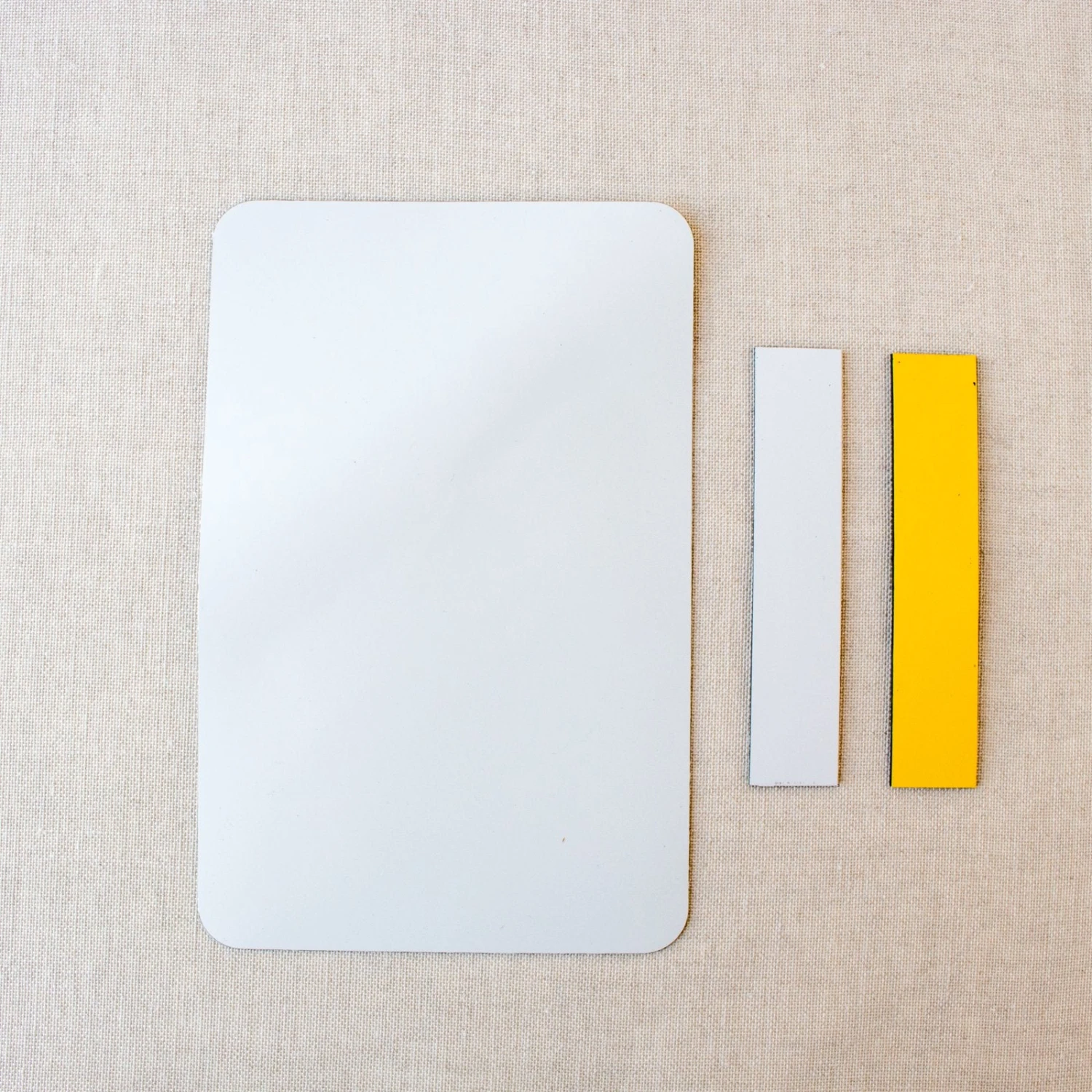 The board measures 5 x 8 inches, and has rounded corners that won’t snag your work. The board comes with two magnet strips.