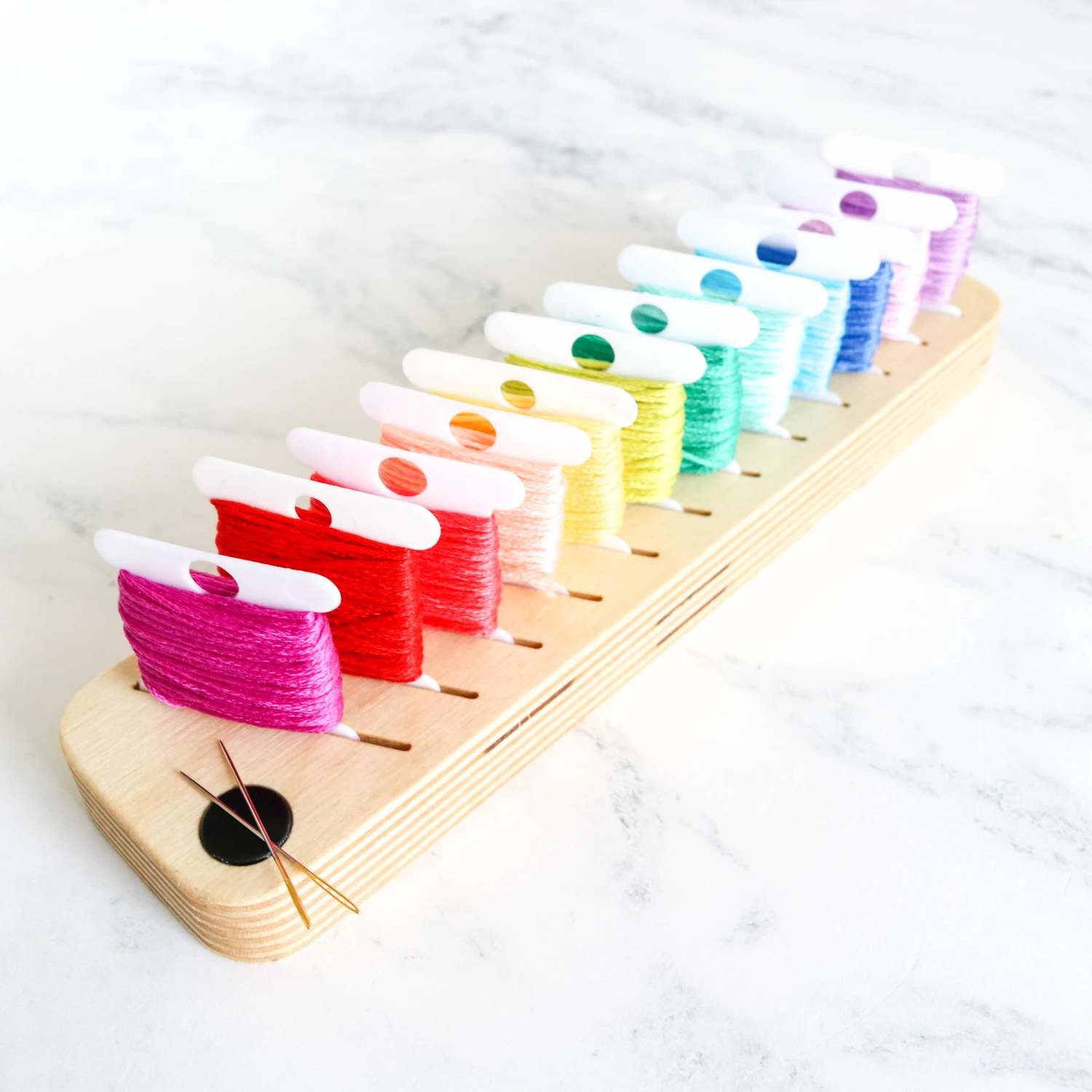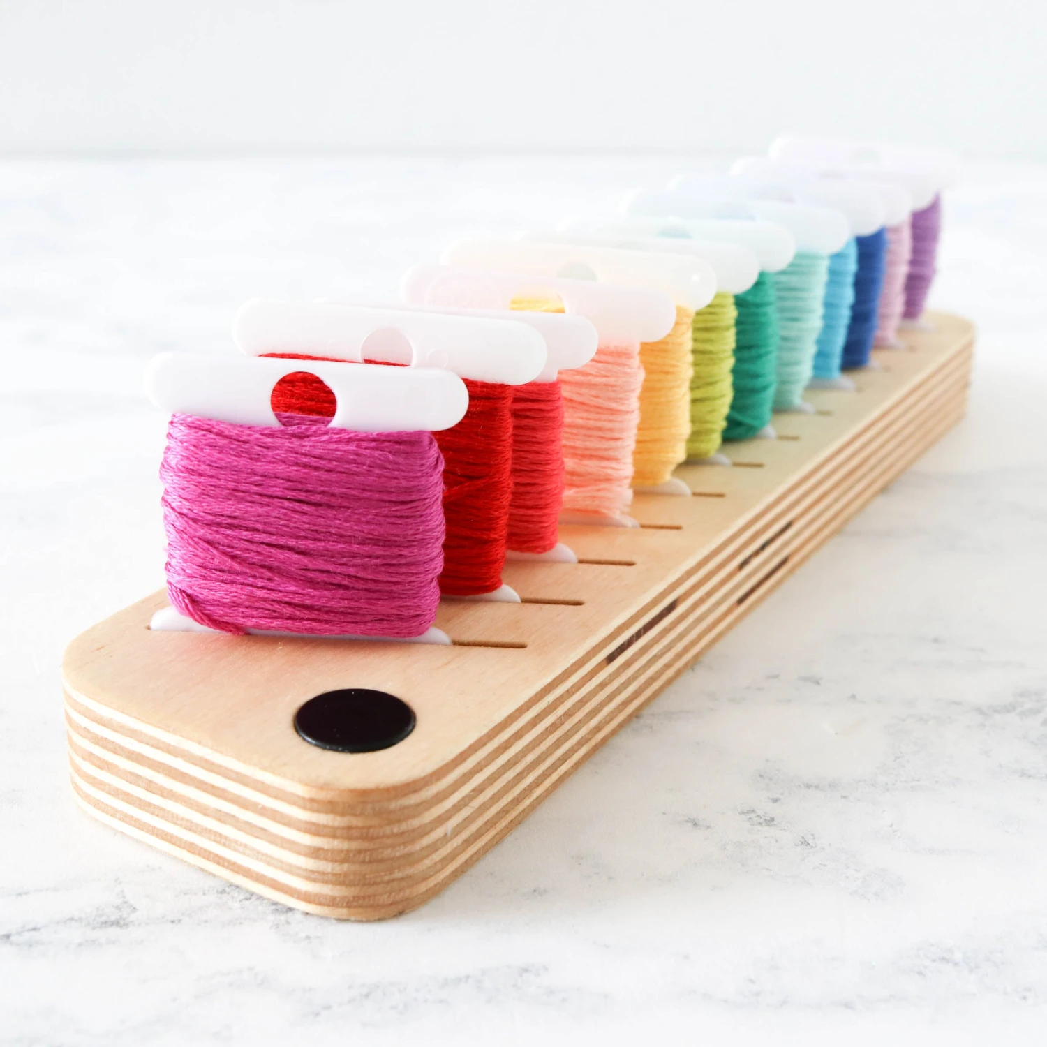 Your thread bobbins will look so pretty arranged on this handy little display rack! Not only that, but they will be close at hand and easy to grab when you’re ready to stitch. The rack holds 12 bobbins, so you can load it up with thread for your current project. Or fill it with your favorite colors and display it on a shelf. The bobbin rack also features a built-in magnet so you have a place to park your needles.