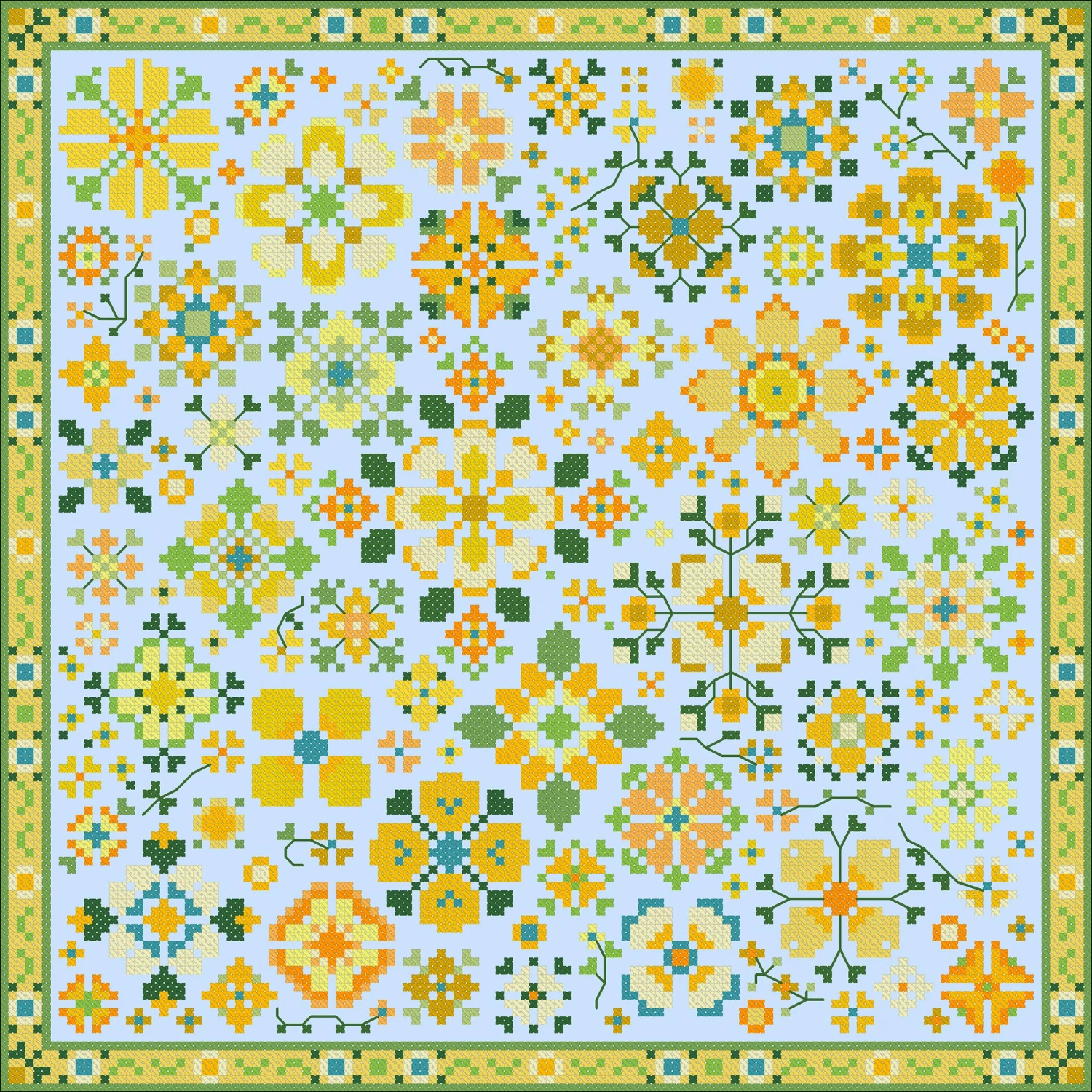 - Finished size:9.3″ x 9.3″ on 14-count Aida or 28-count Linen
