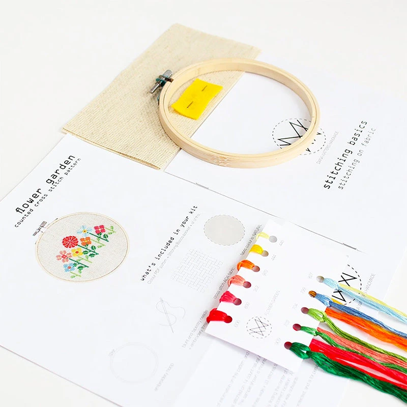 This pretty flower garden cross stitch kit will have you dreaming of spring and sunny days! Designed by Canadian artist Diana Watters, this simple and small design is a perfect choice for beginners.
