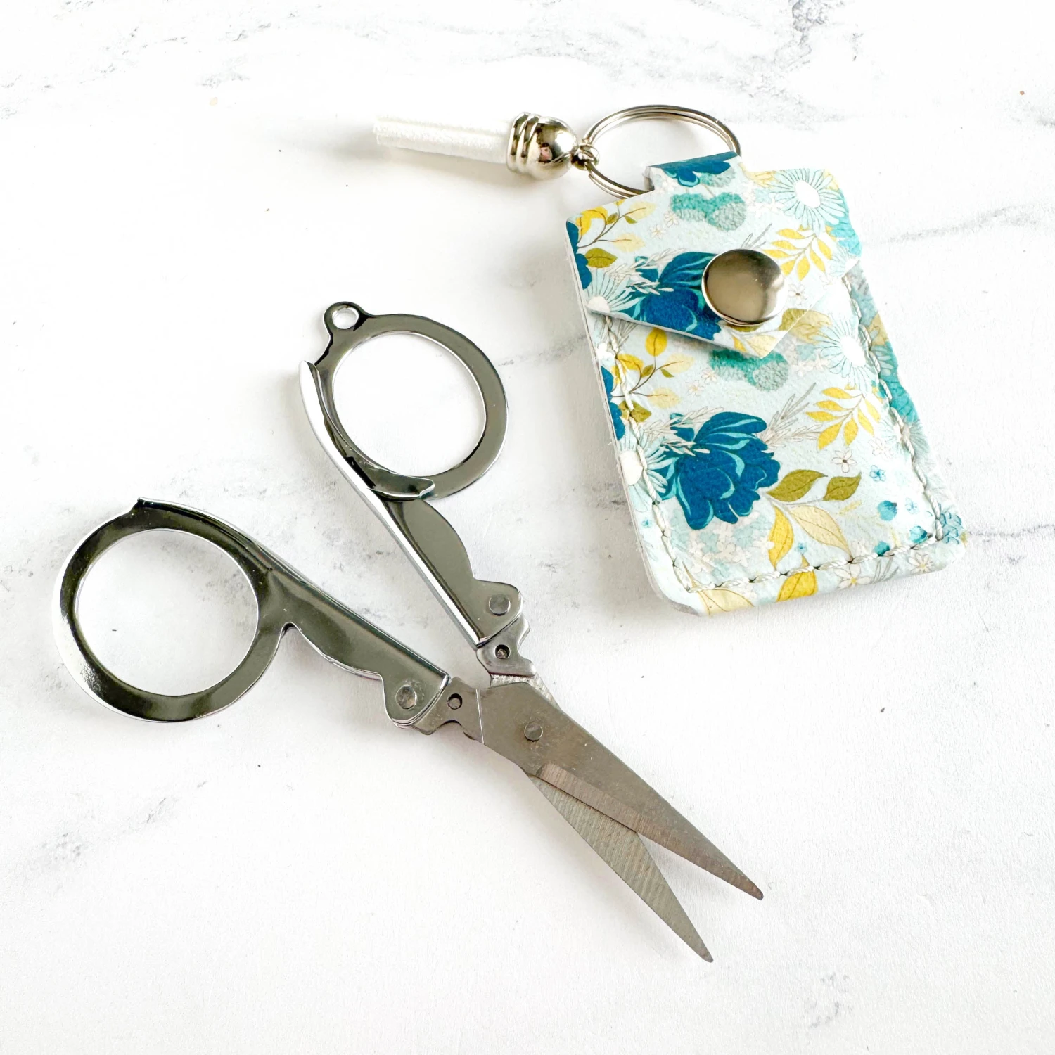 Stay organized and stylish with this pair of folding embroidery scissors, complete with a cute leather pouch. Compact and easy to carry in your stitching bag or purse, this set ensures you’ll have scissors handy whenever you need them.
