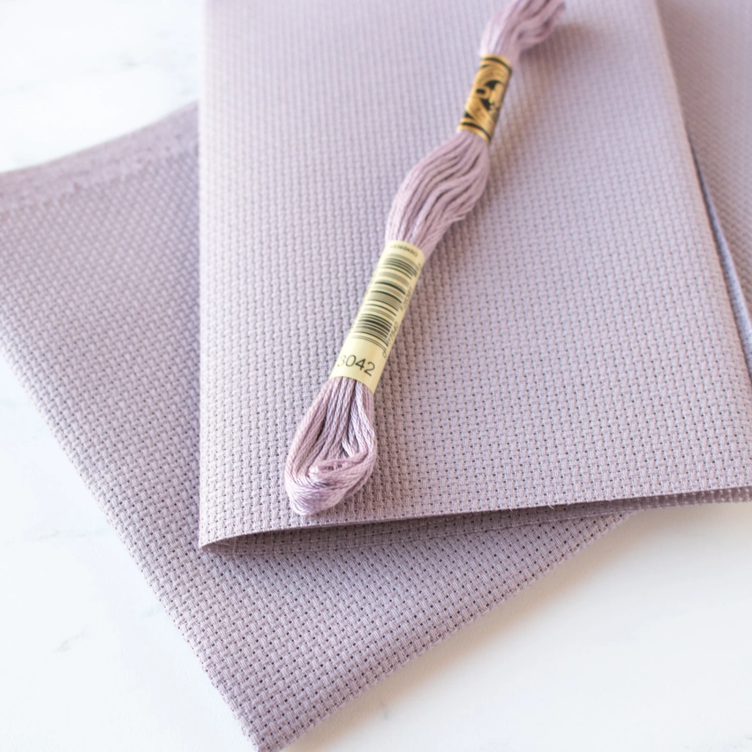 With easy-to-count holes, Aida is a great fabric for all types of cross stitch projects. This 100% cotton fabric has an even weave for perfect stitches. Evoking fields of lavender, this French Country linen is a dusty purple similar to DMC embroidery floss color #3042.