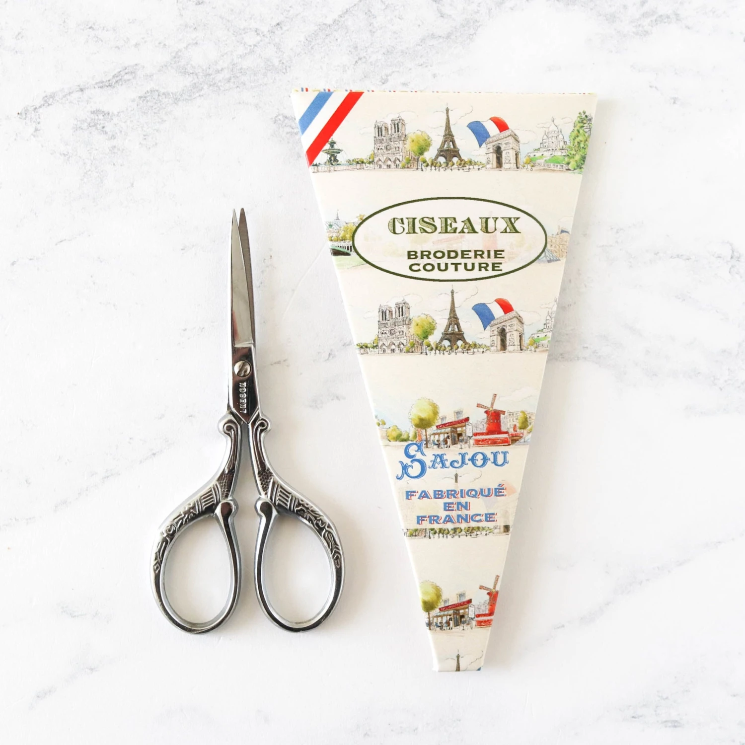 These small, sharp scissors come beautifully presented in a reusable cardboard packet printed with one of four lovely French-inspired motifs. (We will choose a design for you based on available stock.)