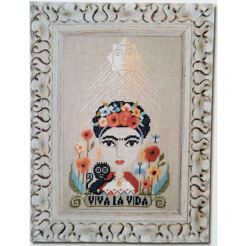 This gorgeous modern cross stitch pattern by Barbara Ana Designs pays homage to Mexican painter Frida Kahlo. The design features lush florals, bright colors, and even one of Kahlo’s beloved monkeys.