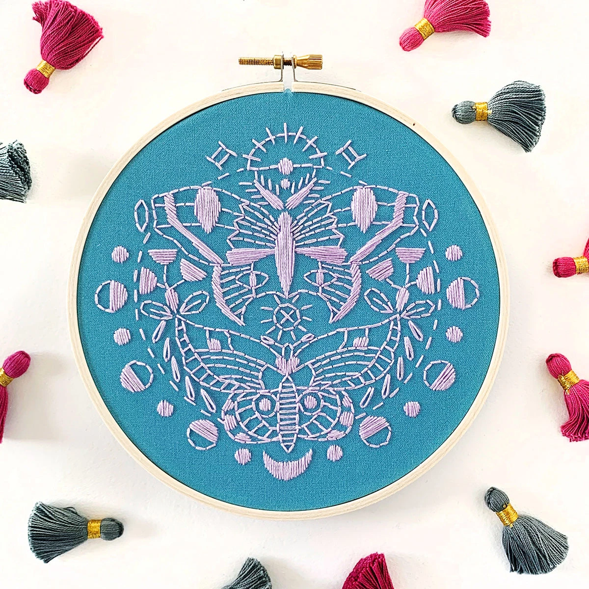You will love stitching all the detail in this ornate and beautiful hand embroidery kit by indie designer Rikrack. The design comes pre-printed on the fabric so it is ready to pop in your hoop and go. The kit has everything you need!