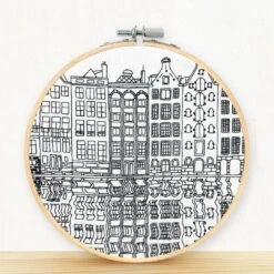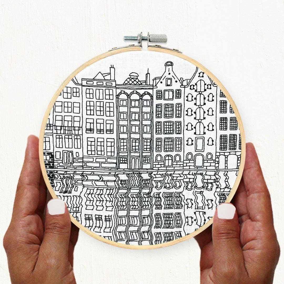 Stitch the city you love with this unique architecture-inspired embroidery kit by Embroidery + Sage. The kit comes with everything you need to complete a modern piece of stitched art that you can hang on your wall or to give to someone special.