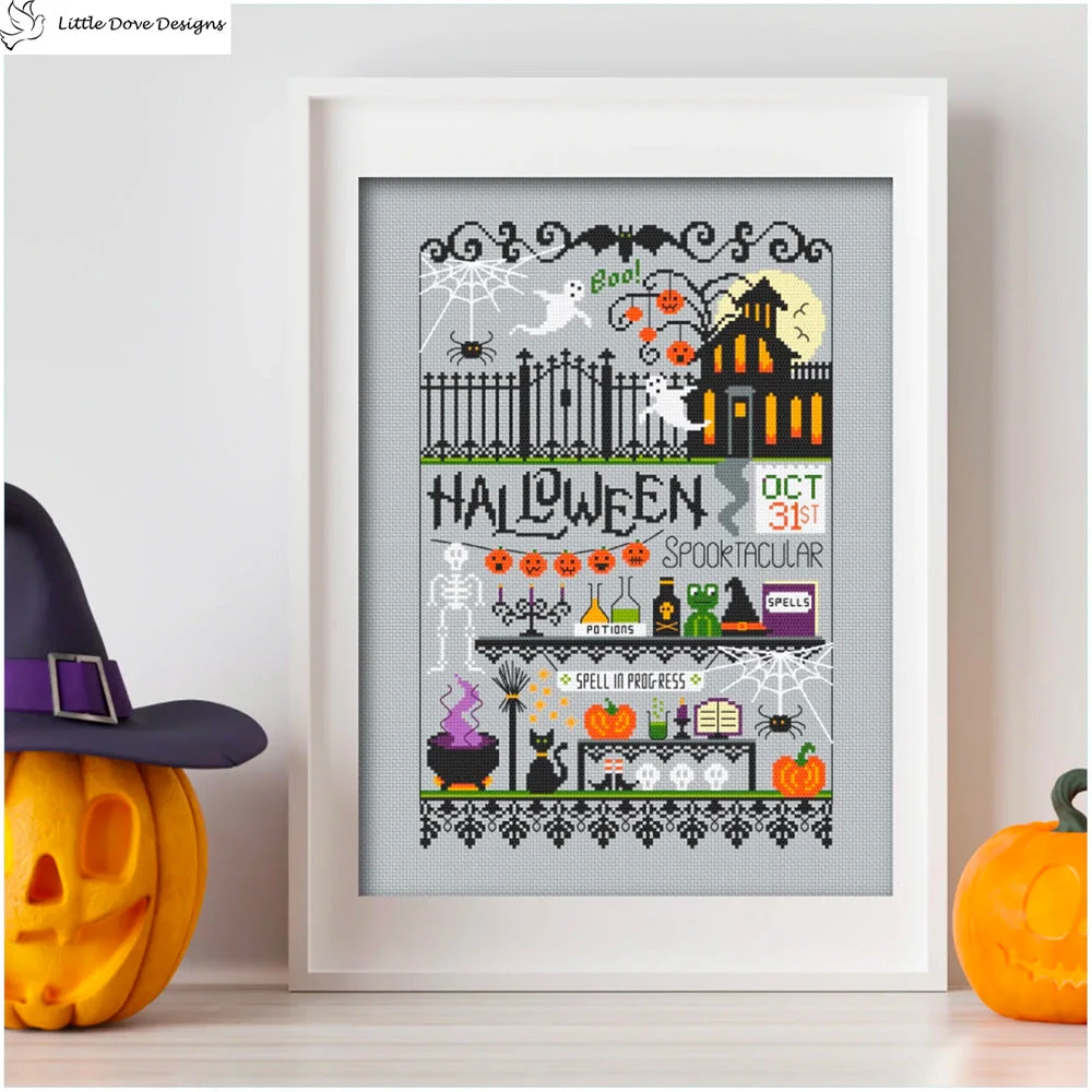 A collection of fun Halloween motifs make up this cross stitch pattern by UK-based Little Dove Designs.