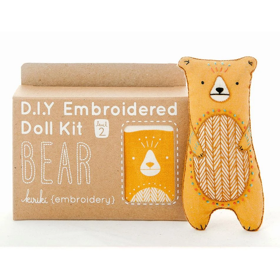 The bear kit uses a combination of basic and intermediate embroidery stitches. The finished plushie is approximately 4-1/2 inches tall.