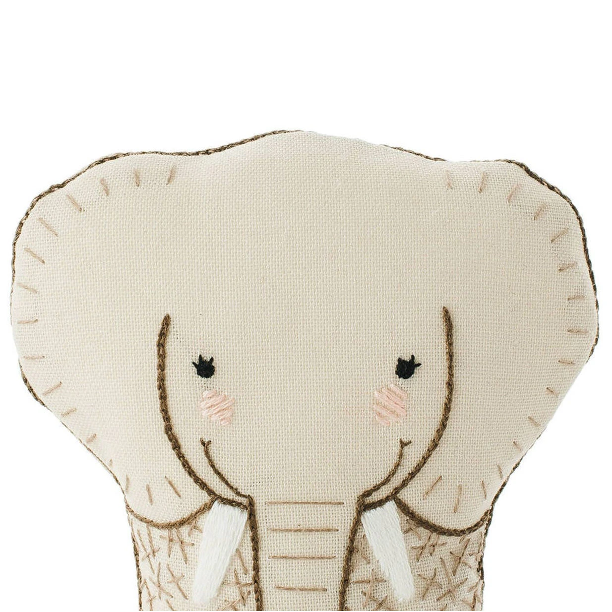 The Elephant kit uses only basic stitches so it’s perfect for beginners. It is intended for stitchers ages 12 and up. The finished plushie is approximately 4 inches tall.
