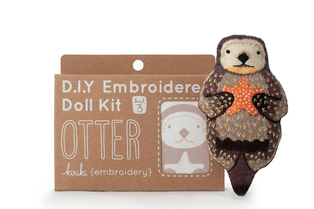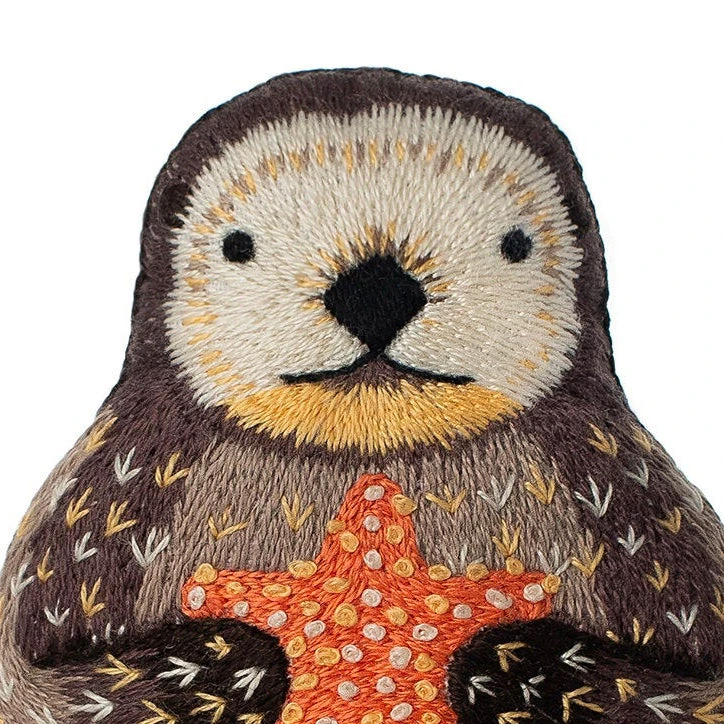 The otter kit uses a variety of embroidery stitches that cover most of the surface of the pattern, so it’s perfect for adventurous beginners or seasoned stitchers. The finished plushie is approximately 4-1/2 inches tall.