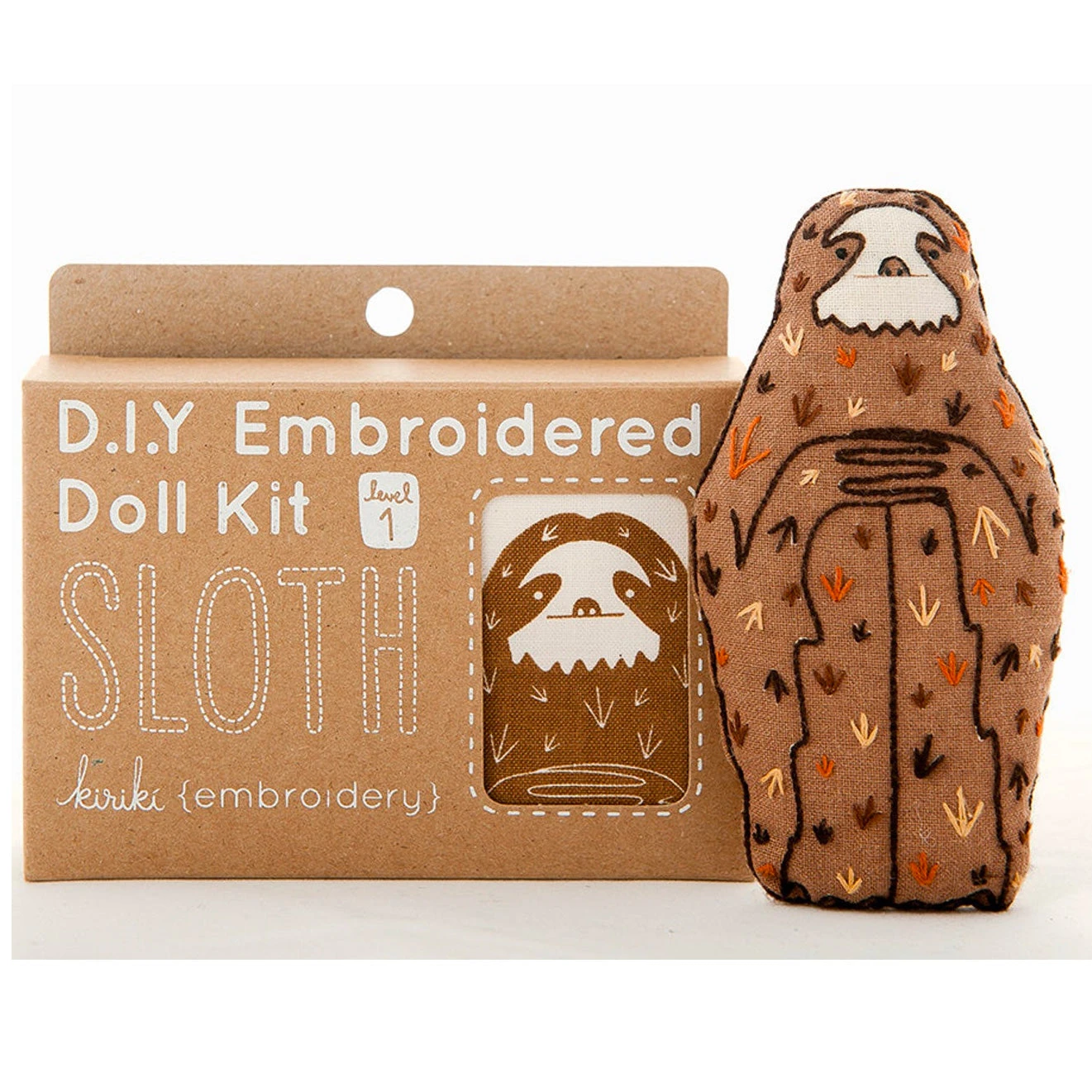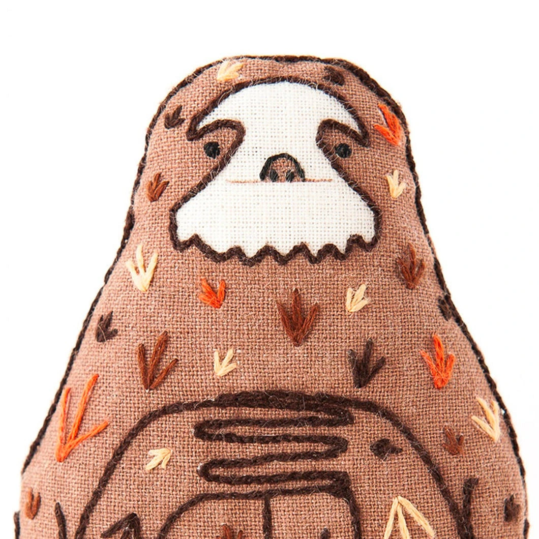 The sloth kit uses only basic stitches so it’s perfect for beginners. It is intended for stitchers ages 12 and up. The finished plushie is approximately 4-1/2 inches tall.