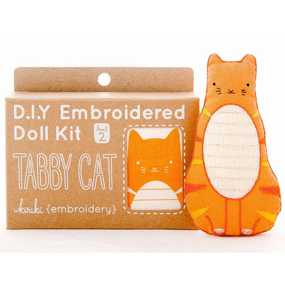 The tabby cat kit uses a combination of basic and intermediate embroidery stitches. The finished plushie is approximately 4-1/2 inches tall.