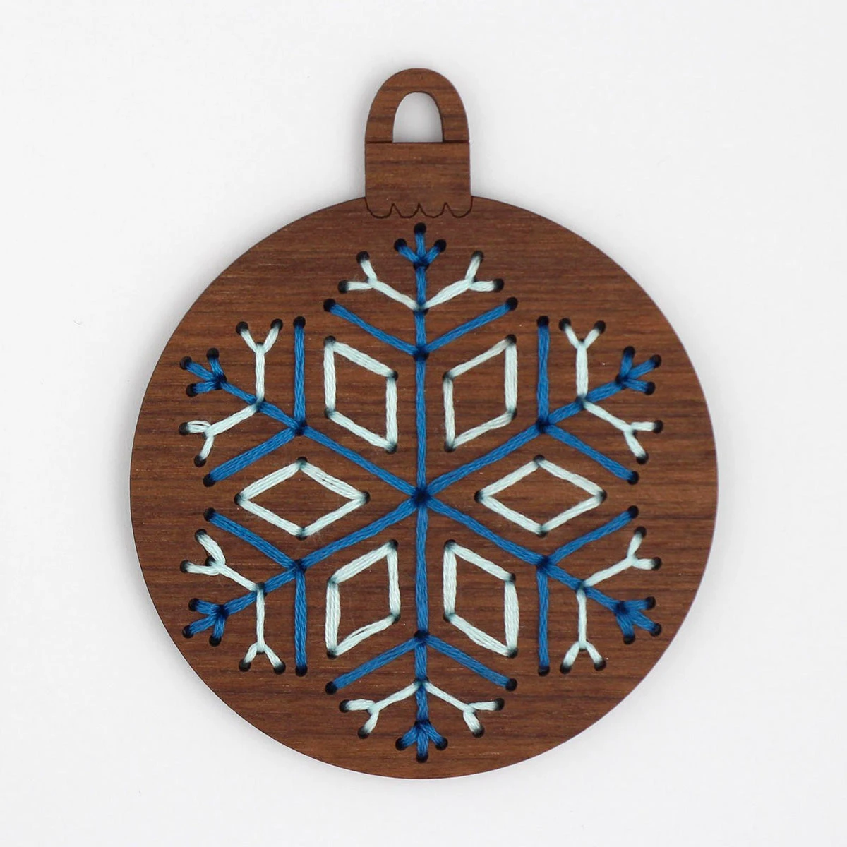 This simple DIY ornament kit by Kiriki Press is perfect for hand embroidery beginners and experts alike! The ornament is made of beautiful walnut wood with pre-cut holes that are a breeze to stitch into. Stitches lines are clearly marked, so it’s easy to follow along.