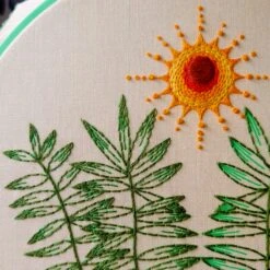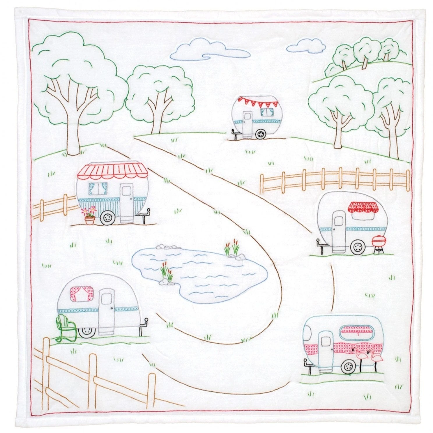 This hand embroidered wall quilt comes with the design printed on the fabric for easy stitching. The quilt panel measures 36″ x 36″.